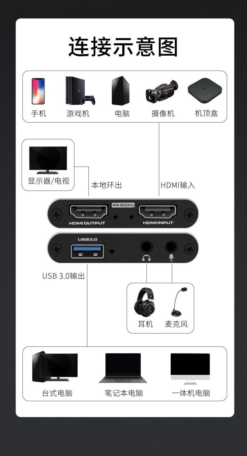 HDMI видеозахватная карта Usb3.0, проектор экрана для компьютера, камера, запись с Ps5 и мобильного телефона