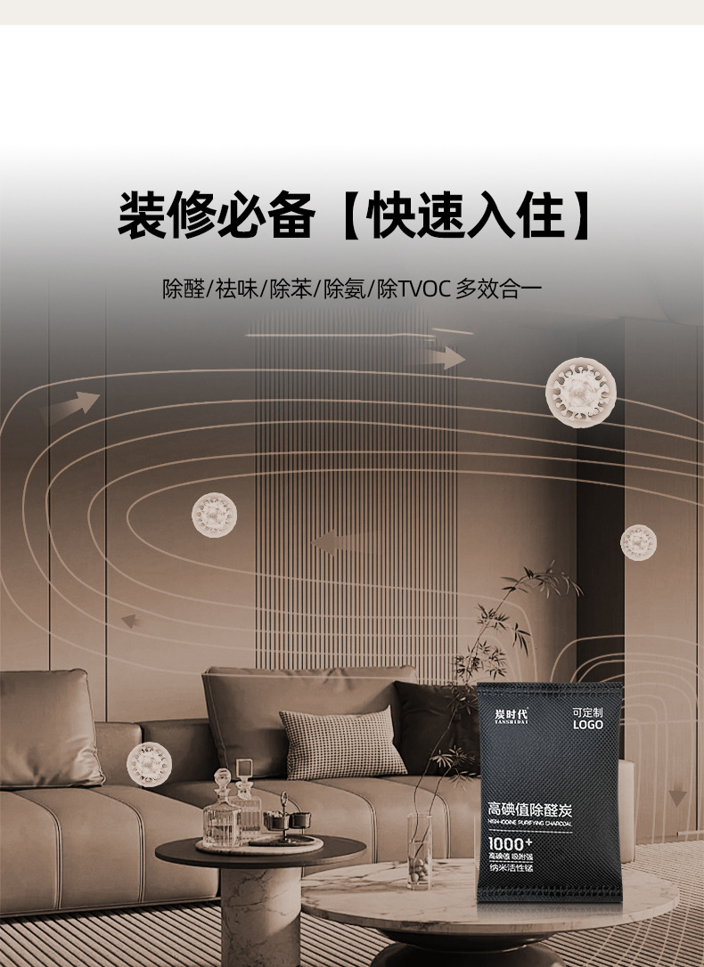 Индивидуальный угольный мешок для удаления формальдегида для новой квартиры без солнечного света, активированный уголь с высоким йодным числом для удаления формальдегида и дезодорации