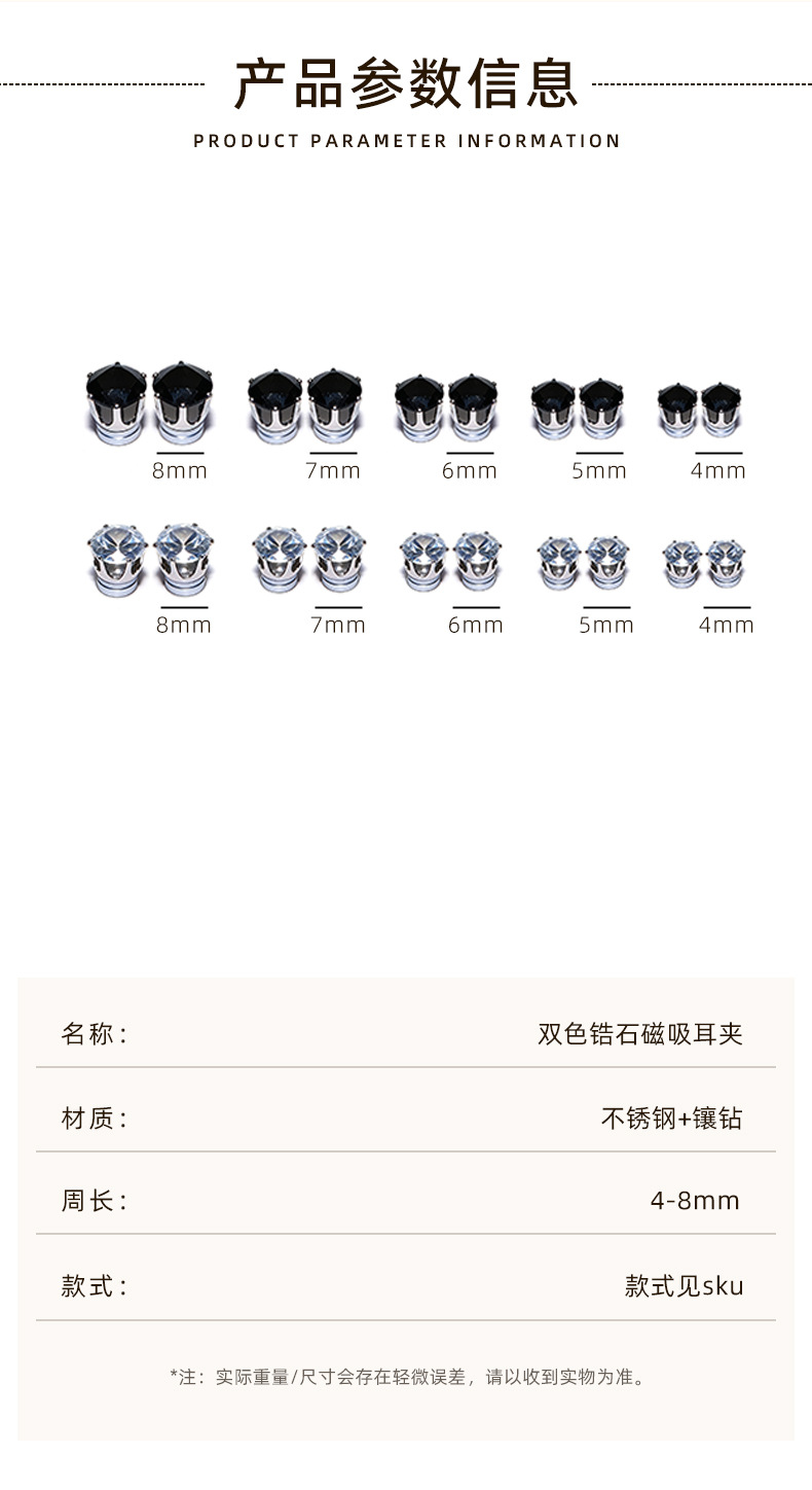![]() | Black | 8mm-zircon magnetic ear clip [single] | ¥0.55 / ≈ 7 ₽ | 99963 | 6141429295045 | |