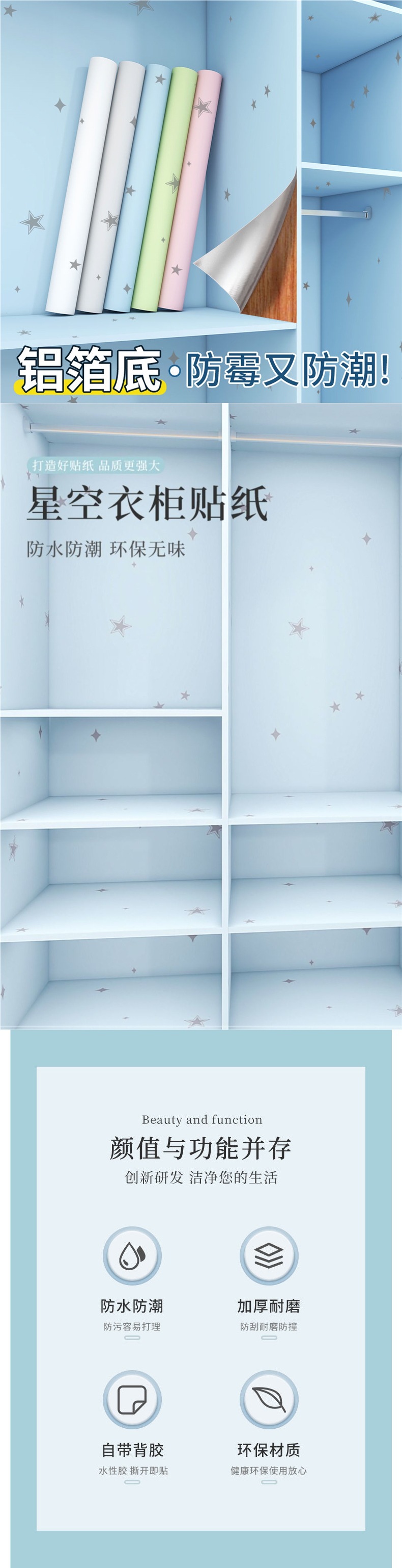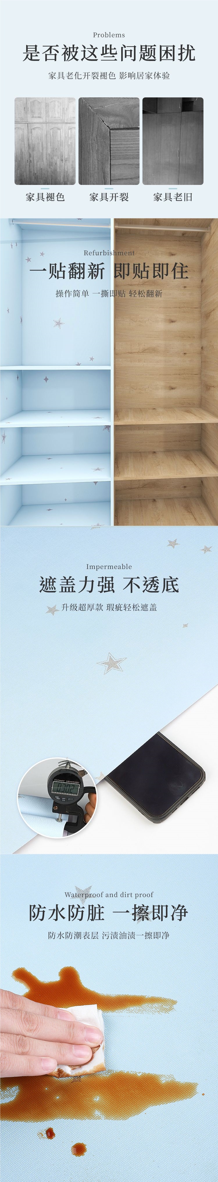 Наклейки для шкафов, влагостойкие и противогрибковые, утолщенные, самоклеящиеся, для ремонта мебели