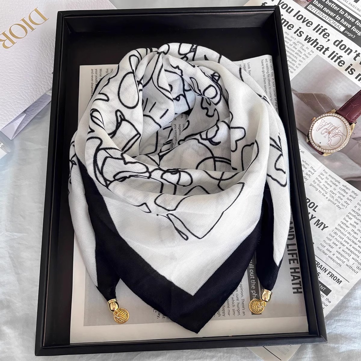 2025 Новый магнитный квадратный шарф треугольный шарф весна, осень и зима модный шарф высокого класса защита шеи теплый шелковый шарф