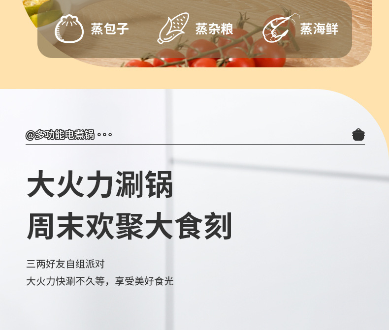 Электрический обогрев/функция горячего котла Steam, Fried, Fry, Cook, Stew, Simmer, Hot pot, Pot