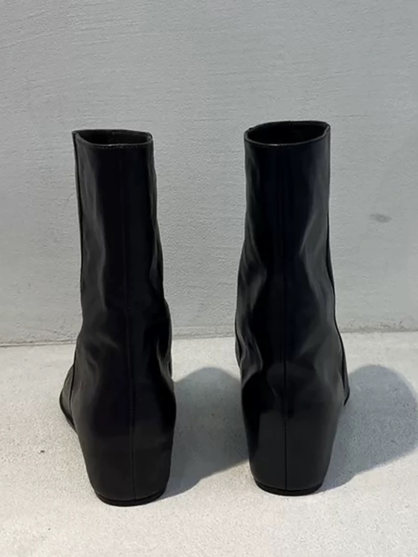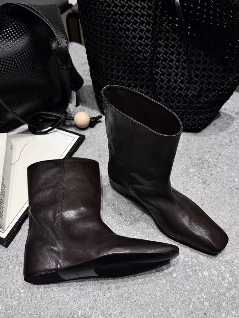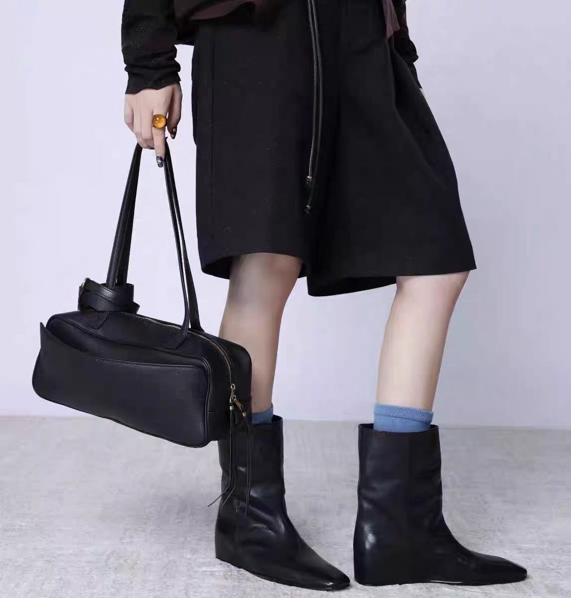 Кожаная версия ~ винтажные нишевые ботинки с квадратным носком внутренним увеличением для женщин осень и зима ботинки до середины икры челси