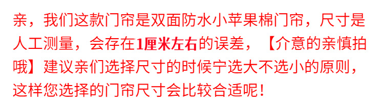 ![]() | 80x 2.2m | Double-sided waterproof cotton door curtain | ¥17.4 / ≈ 210 ₽ | 527 | 6122359378064 | |