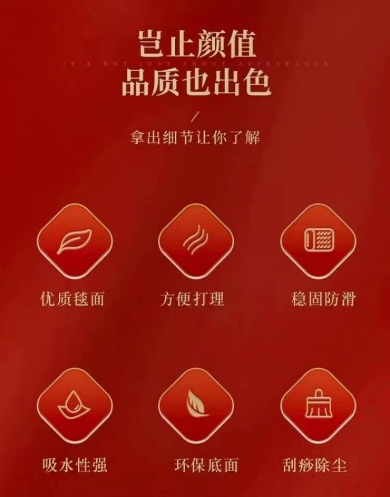 ![]() | Chinese red festive edition - abundant fortune & prosperity | 80* 50cm -rubber non-slipbottom | ¥6.8 / ≈ 82 ₽ | 869850 | 6146103154971 | |