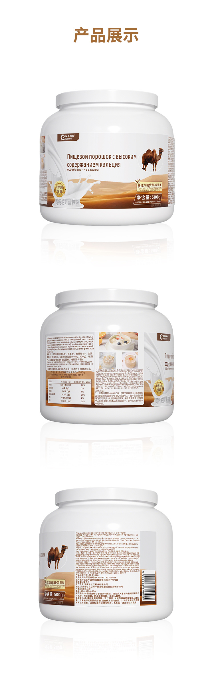Популярный высококальциевый порошок верблюжьего молока 500 г Консервированная пищевая добавка для людей среднего и пожилого возраста Прямые продажи от производителя Поддержка дропшиппинга