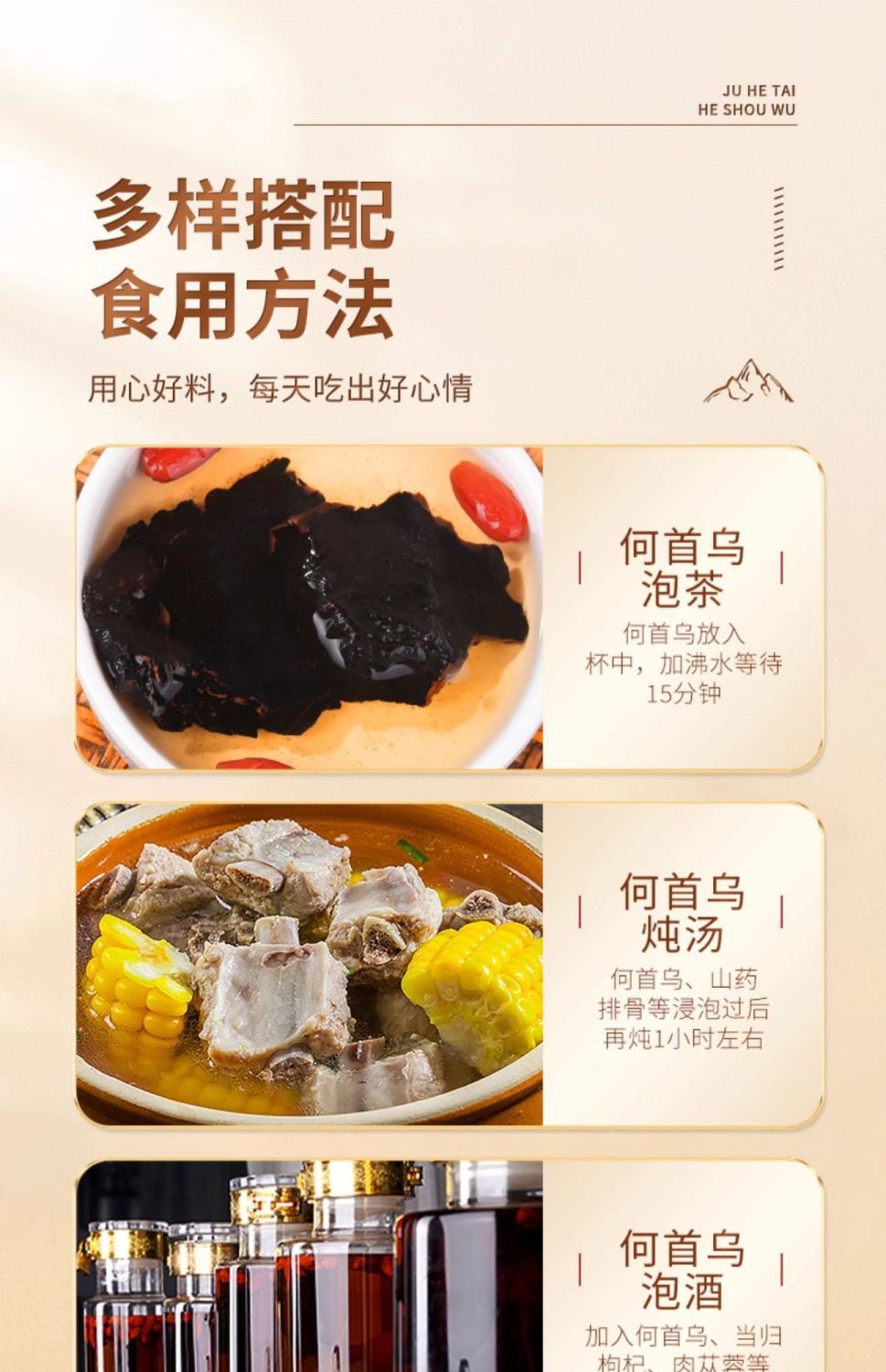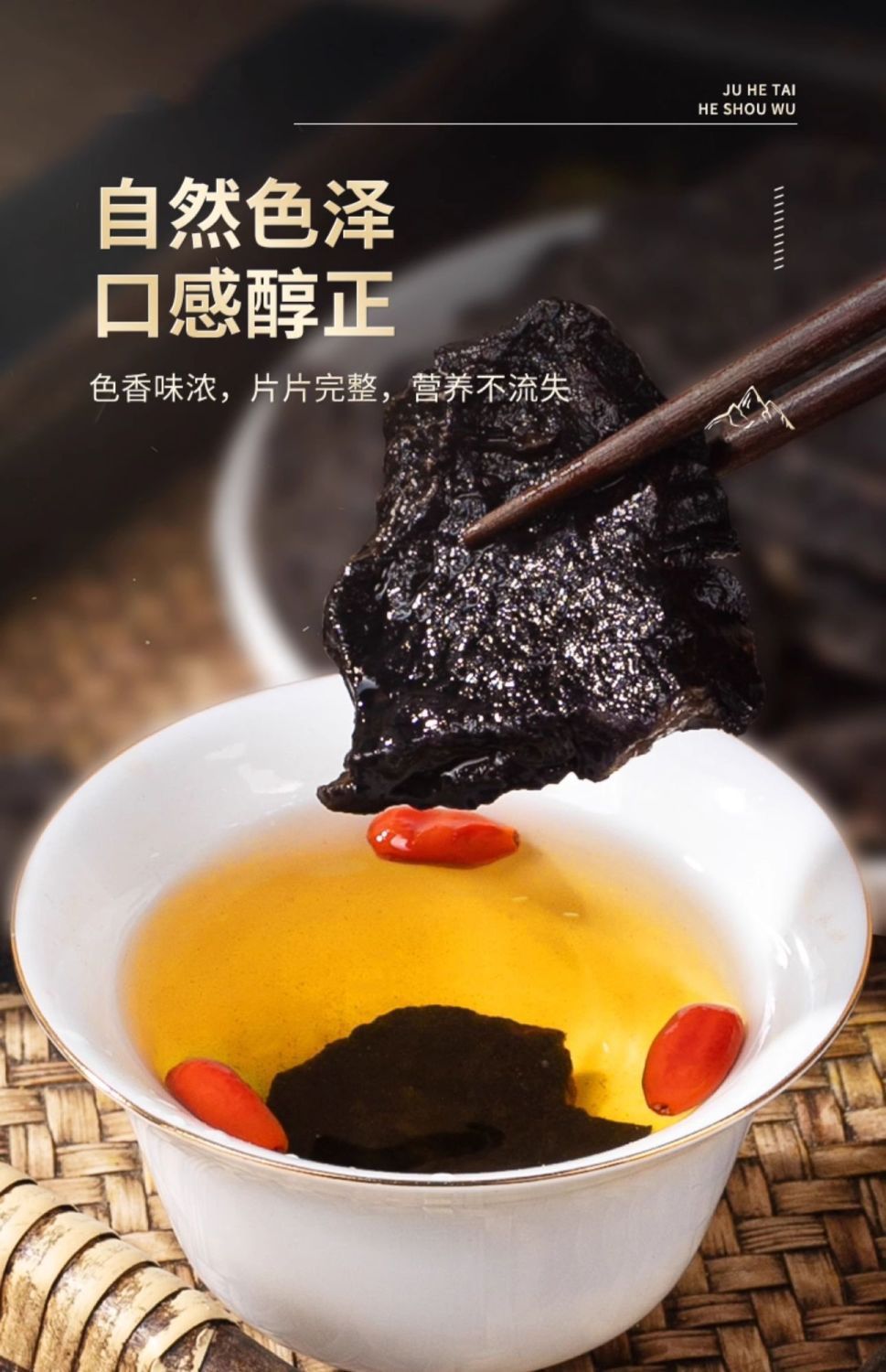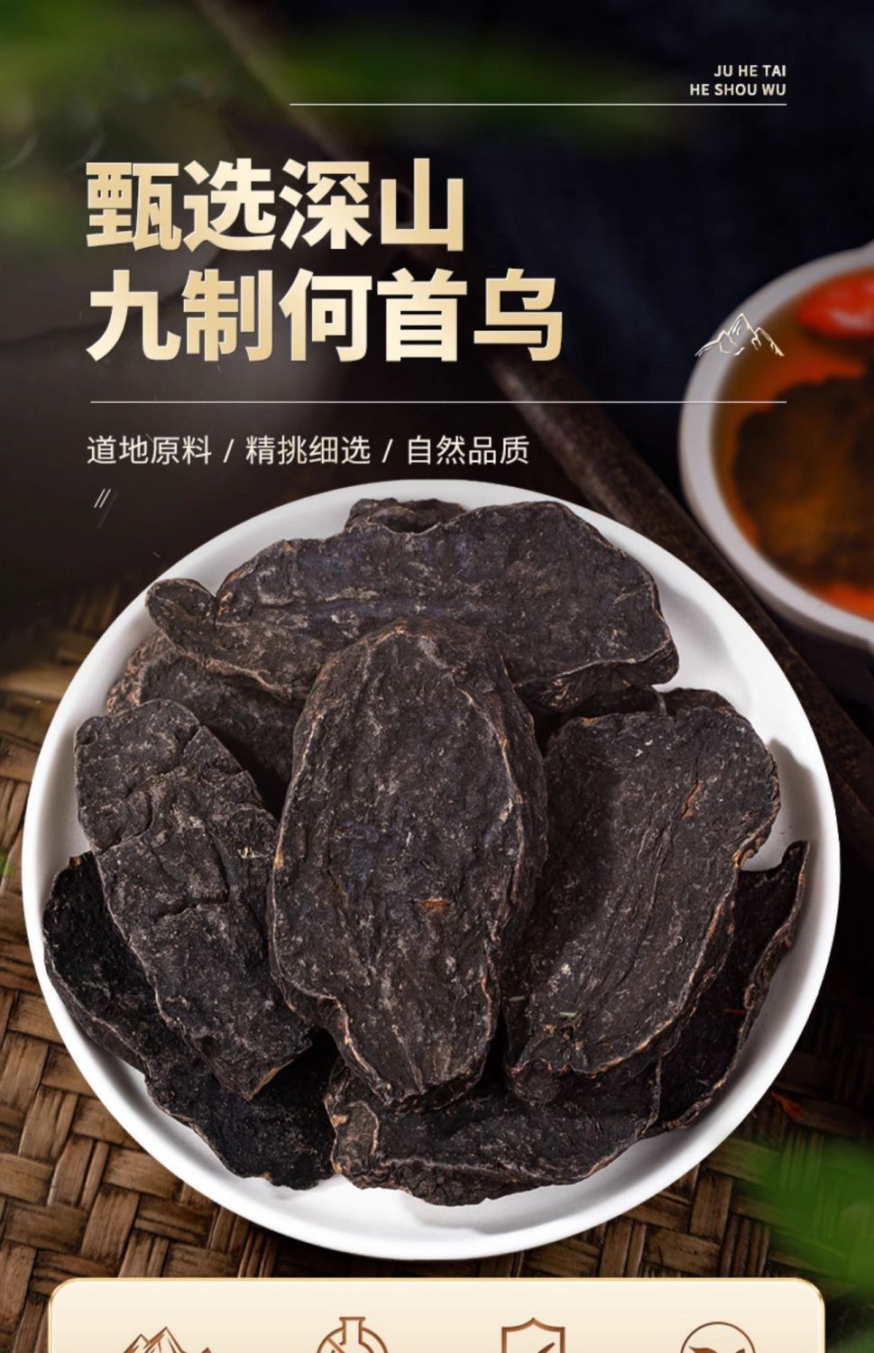 Аутентичная полигонум мультифлорума от Jihaitang, сухие товары, чай для здоровья, девять раз пропаренный и девять раз обработанный, аутентичный продукт для замачивания в воде или приготовления чая, свежий продукт