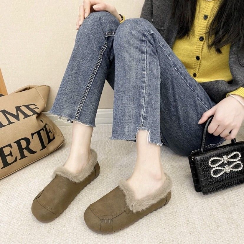 Новые зимние винтажные плоские туфли 2025, с утеплителем и мягкой подошвой, теплые бини туфли, не скользящие, хлопковые туфли в стиле Birkenstock