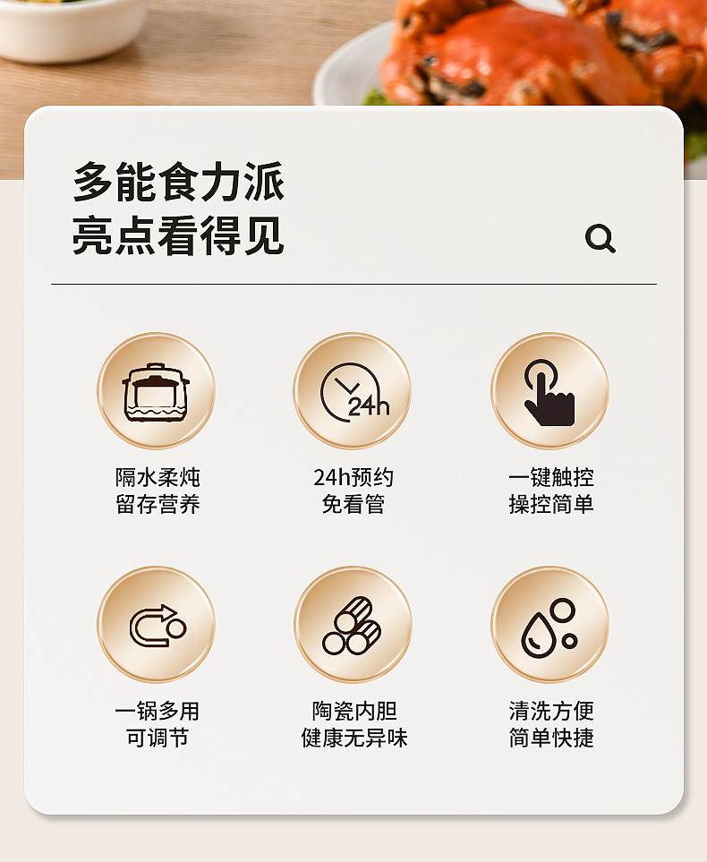 Функция Steam, Stew, Insulation, Timing, Make soup, Cook porridge, Automatic power off, Anti-dry burning, Appointment