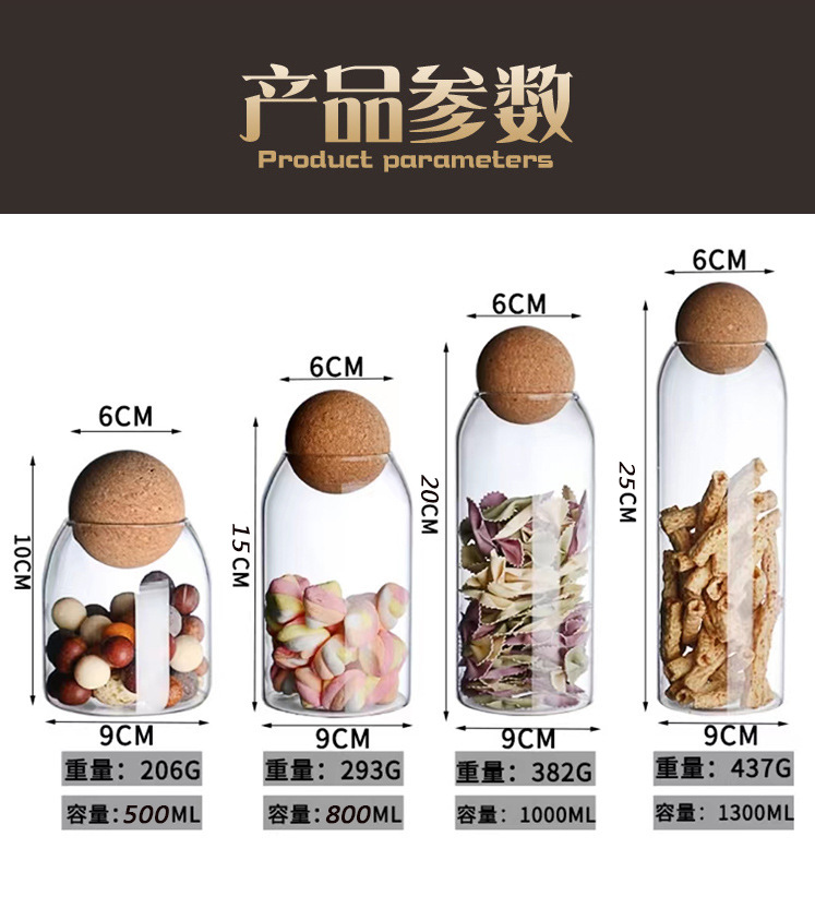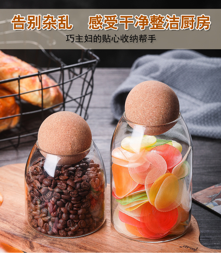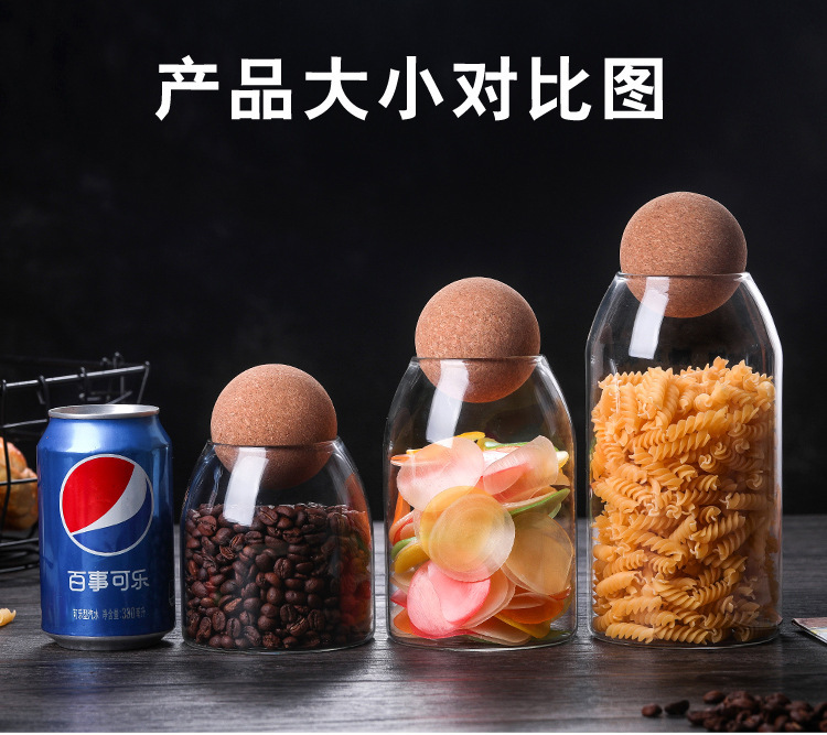 Пробковая пробка для стеклянной герметичной банки, креативная простая банка для хранения чая и кофейных зерен, большая боросиликатная банка