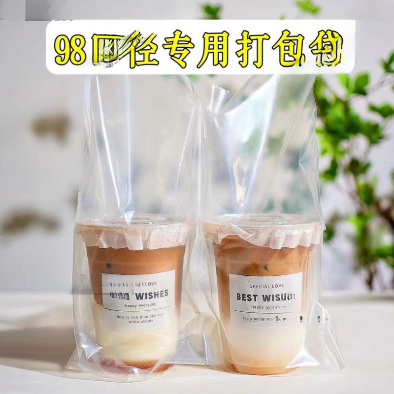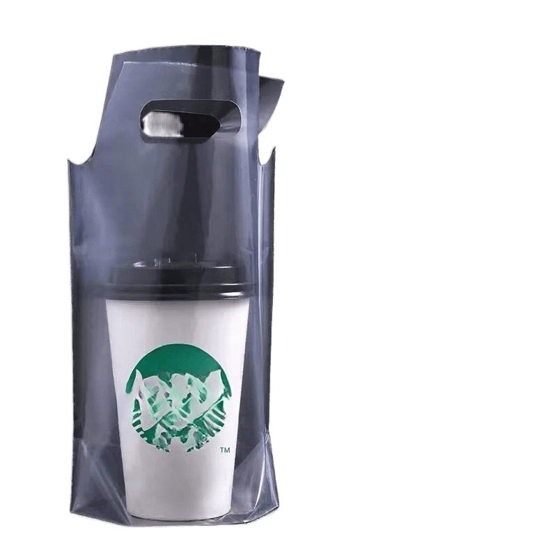 Упаковка для напитков, одноразовая, для молочного чая, портативная, прозрачный пакет для двойной чашки, пластиковый ремень