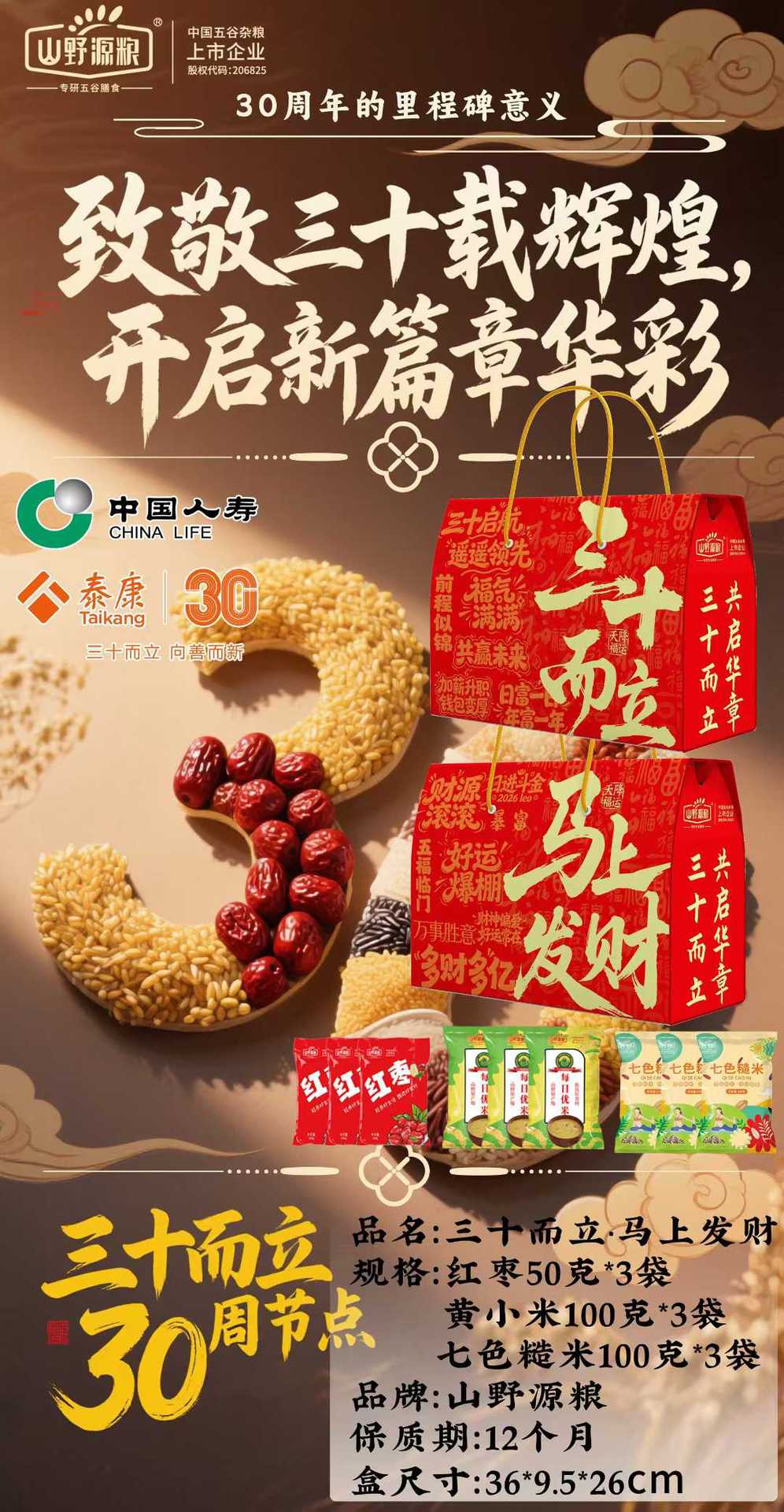 ![]() | Get rich immediately whole grain gift box (red dates 50g*3 bags, yellow millet 100g*3 bags, seven-color brown rice 100g*3 bags) | ¥15.5 / ≈ 187 ₽ | 7056 | 6120506015906 |