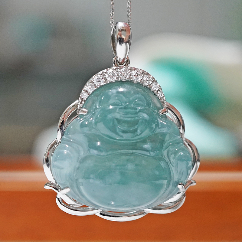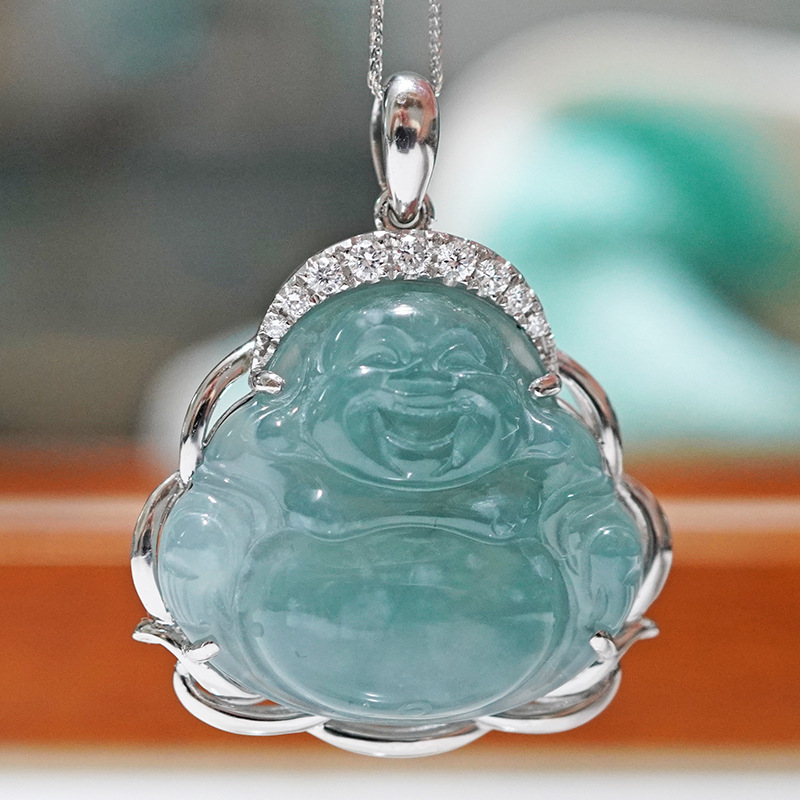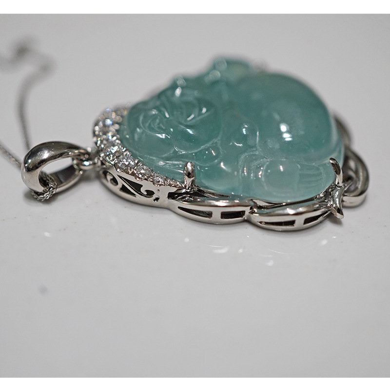 Подвеска из платины Pt950 с культивированным бриллиантом, нефритовая улыбающаяся Будда, инкрустированная полным бриллиантом