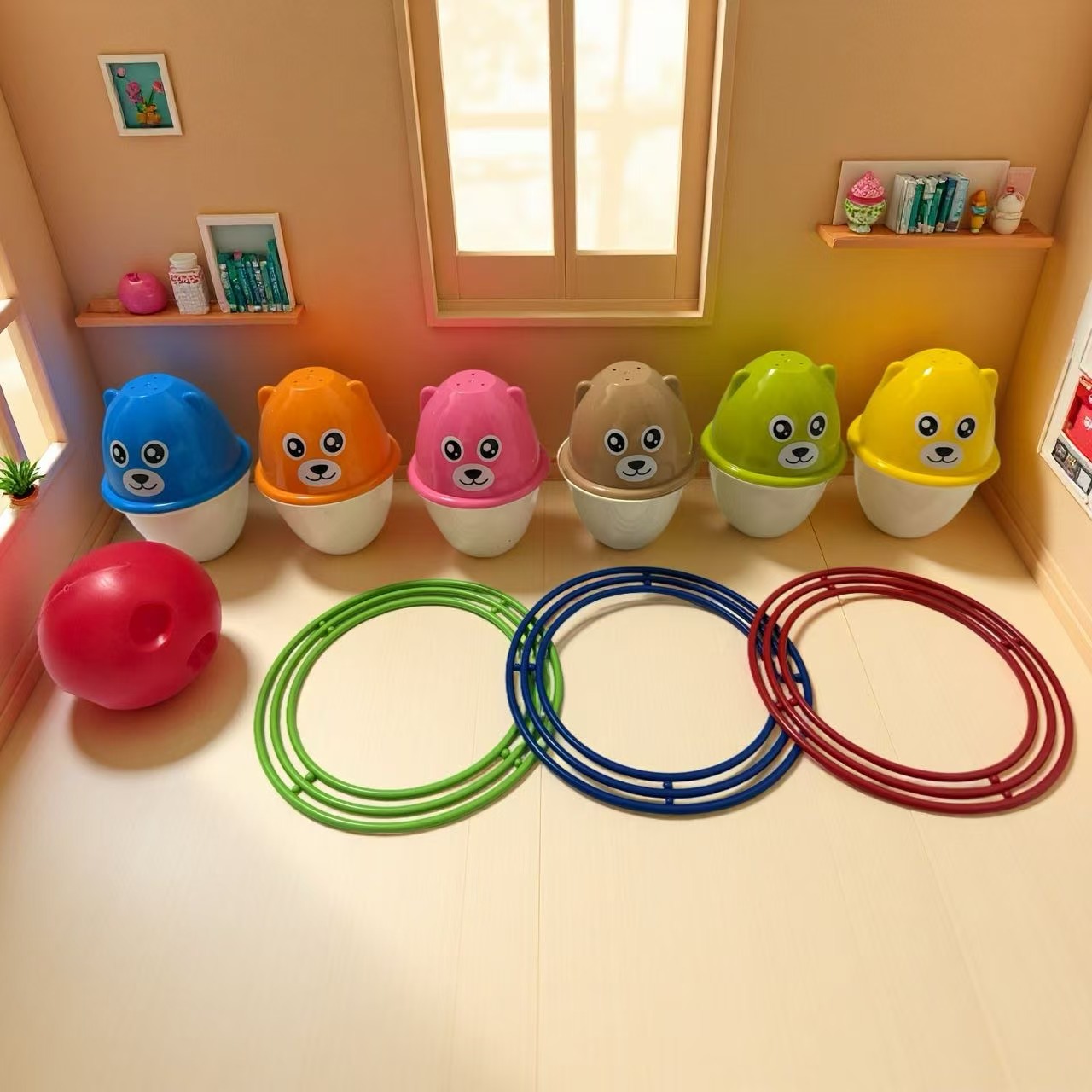 Детская игрушка-колечко для боулинга, развивающая игрушка для раннего обучения, игрушка для распознавания цветов