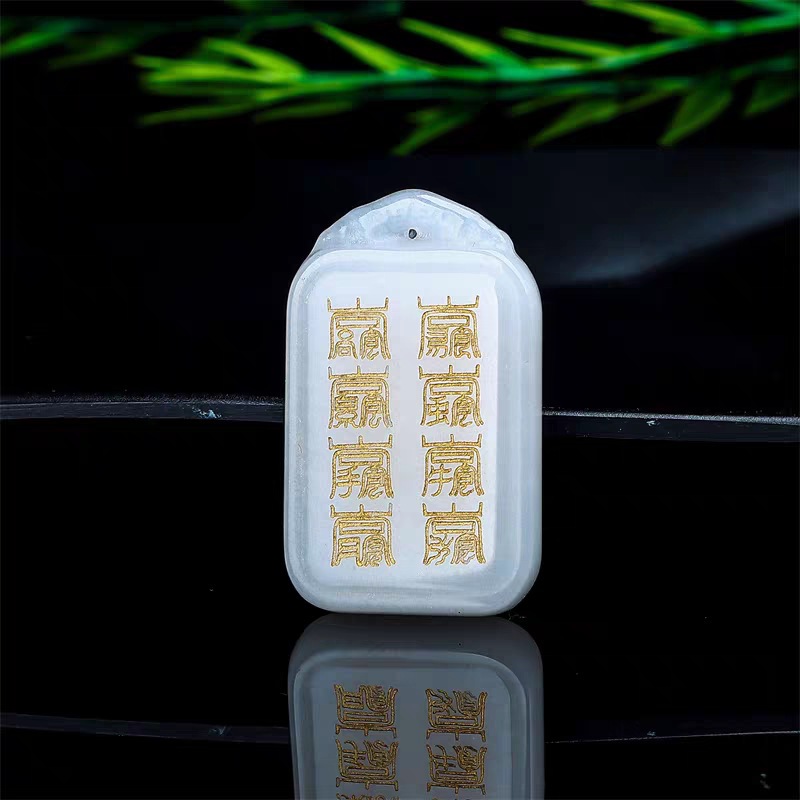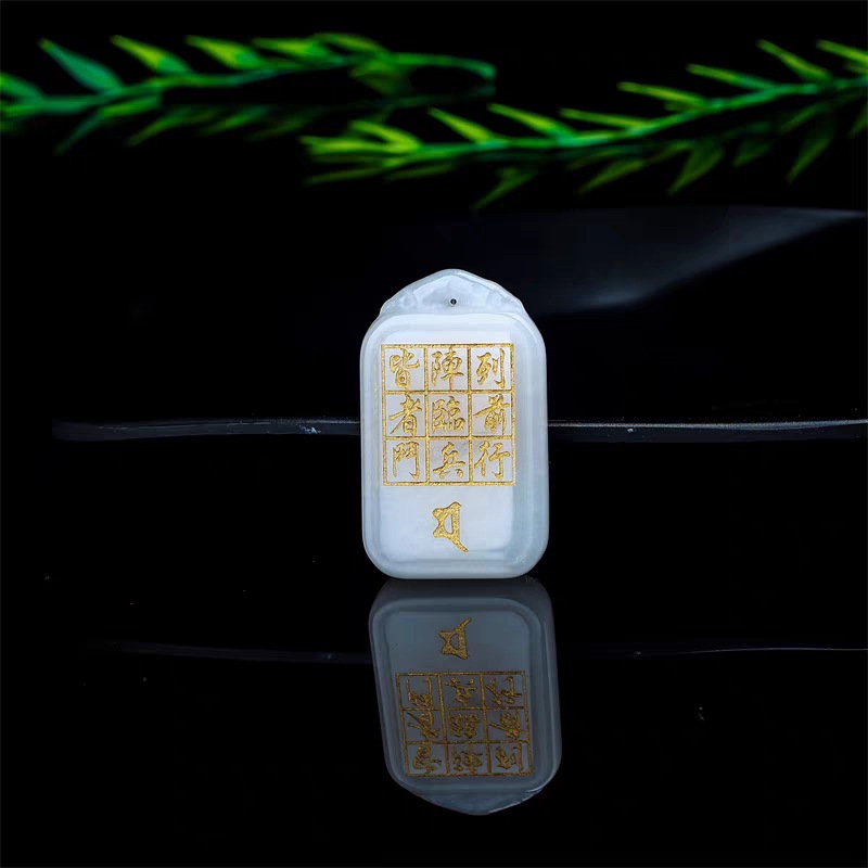 Подвеска из нефрита с золотой нитью, стиль Ваньхэ, даосский амулет, подвеска с северным императором Ба Юнь Фу, девятисимвольная мантра, плита У ши