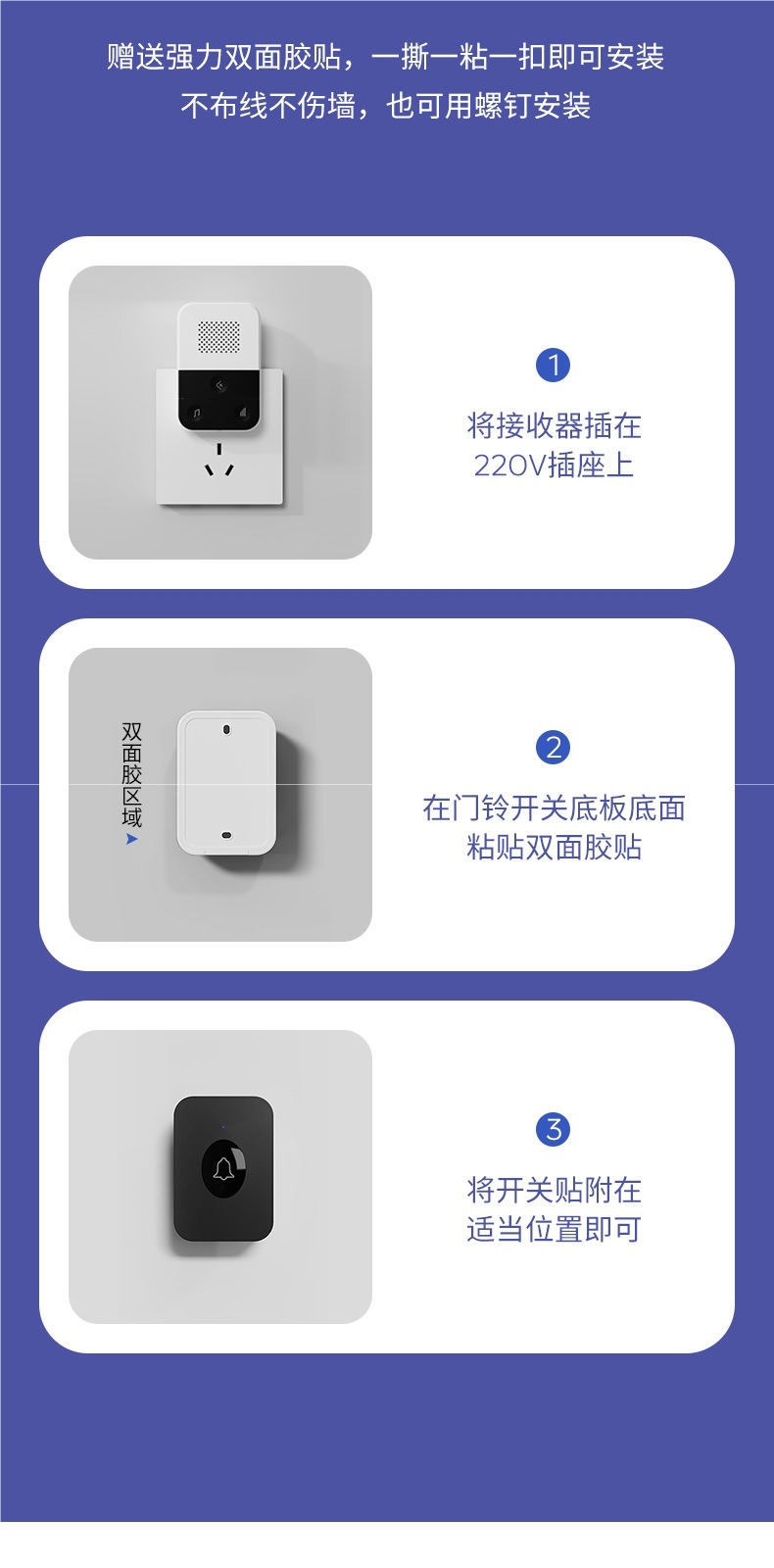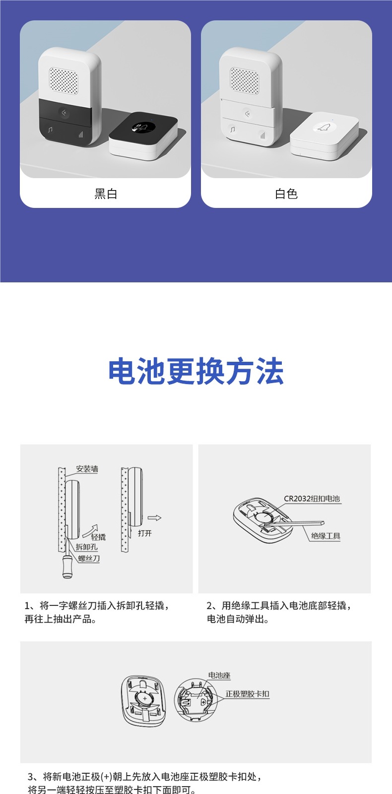 ![]() | White [2 rings + 1 press bell] (battery included) | ¥46.34 / ≈ 558 ₽ | 698 | 6118792854756 | |