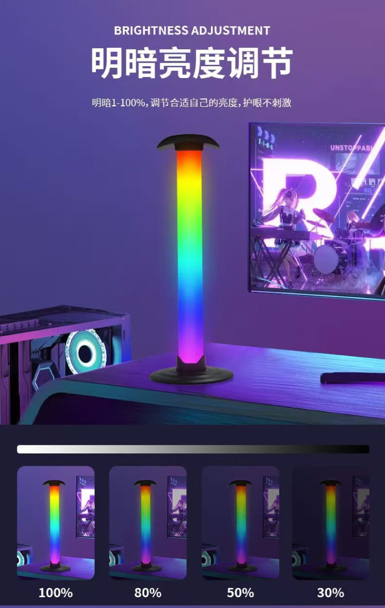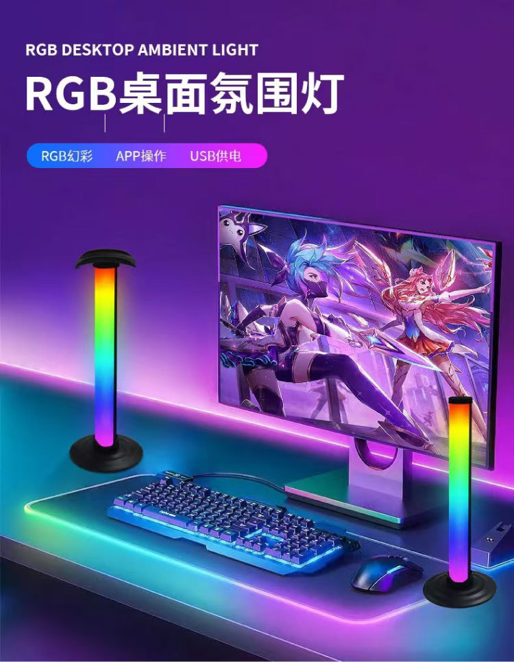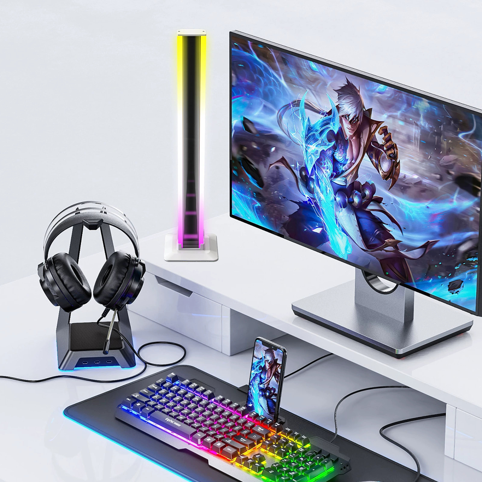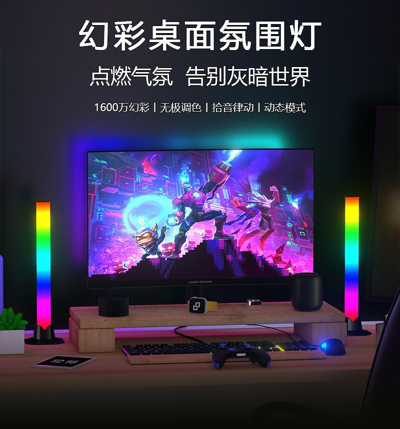 USB按键耳机支架桌面氛围灯 电竞房电脑RGB幻彩装饰灯耳机展示架