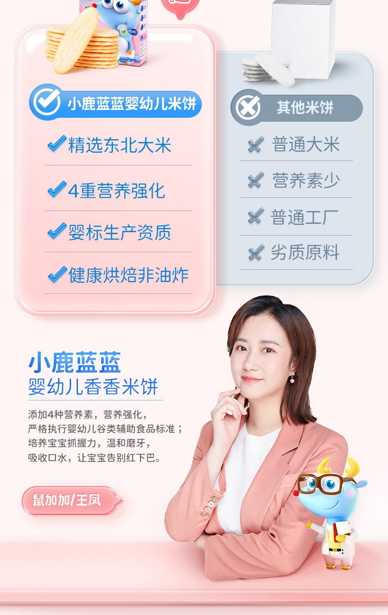Печенье для младенцев Little Deer Lanlan из риса для прорезывания зубов с 6 месяцев, без добавок, прикорм