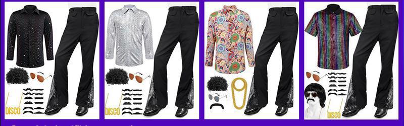 Новый мужской костюм в стиле диско 70-х, блестящая рубашка и расклешенные брюки