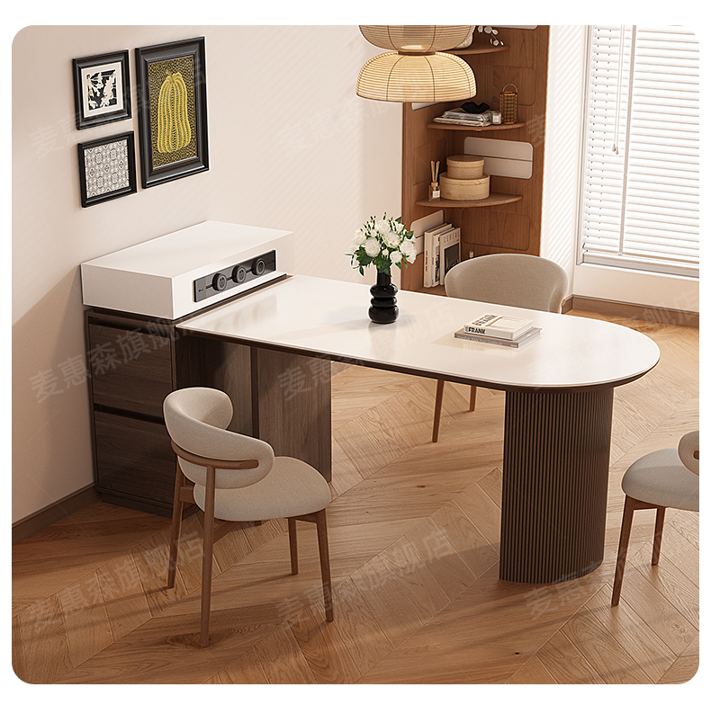 Обеденный стол в средневековом стиле, отдельный островной стол с интегрированным узким шкафом для хранения чая