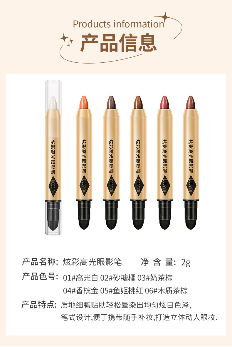 Bobani яркий водостойкий карандаш для теней с ленивыми глазами, не тускнеющий хайлайтер, двусторонний карандаш для новичков, оптовая продажа