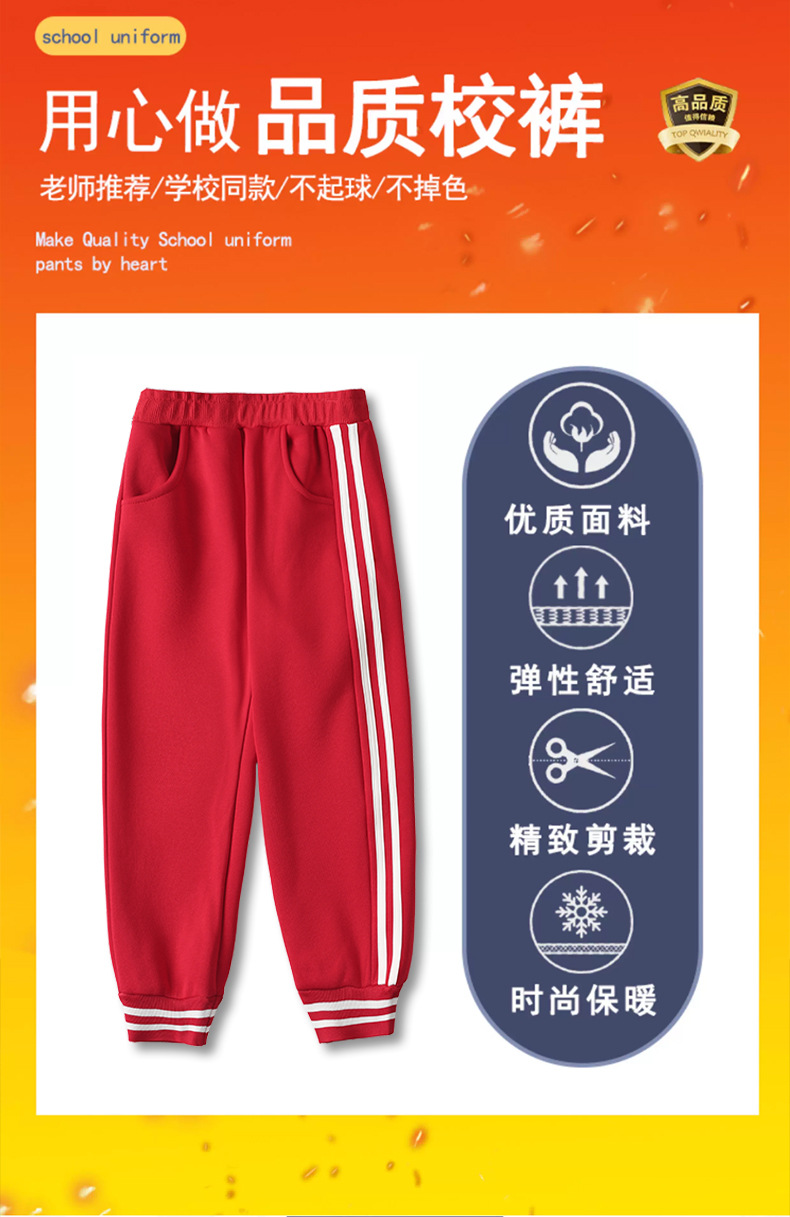 Школьные брюки для детей, красные брюки с двумя полосками, школьные брюки для мальчиков и девочек с манжетами, осенне-зимний стиль