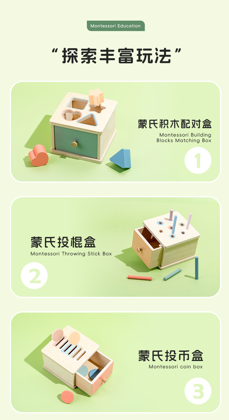 МонтеССори классификационная игрушка. Коробка для бросания монет, цветные строительные блоки для обучения формам.
