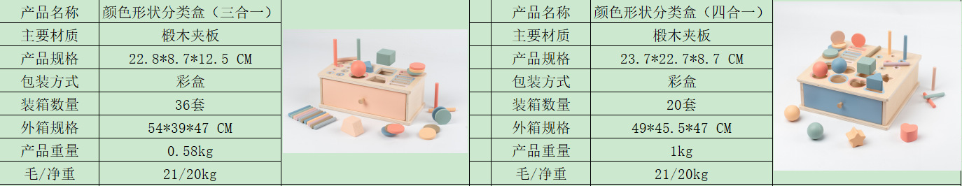 ![]() | Color and shape sorting box (four-in-one) | ¥38.0 / ≈ 458 ₽ | 9980 | 5956180732568 |
