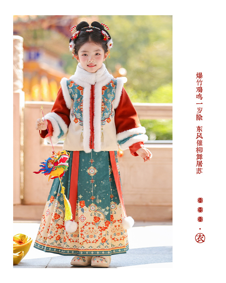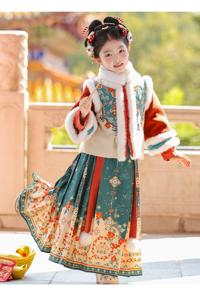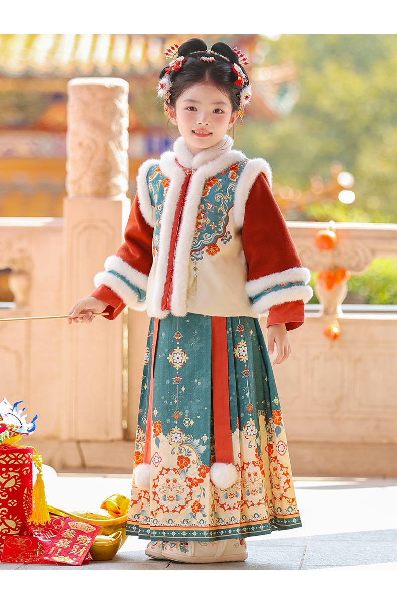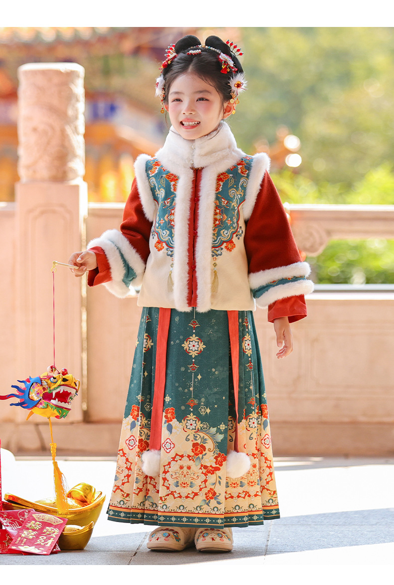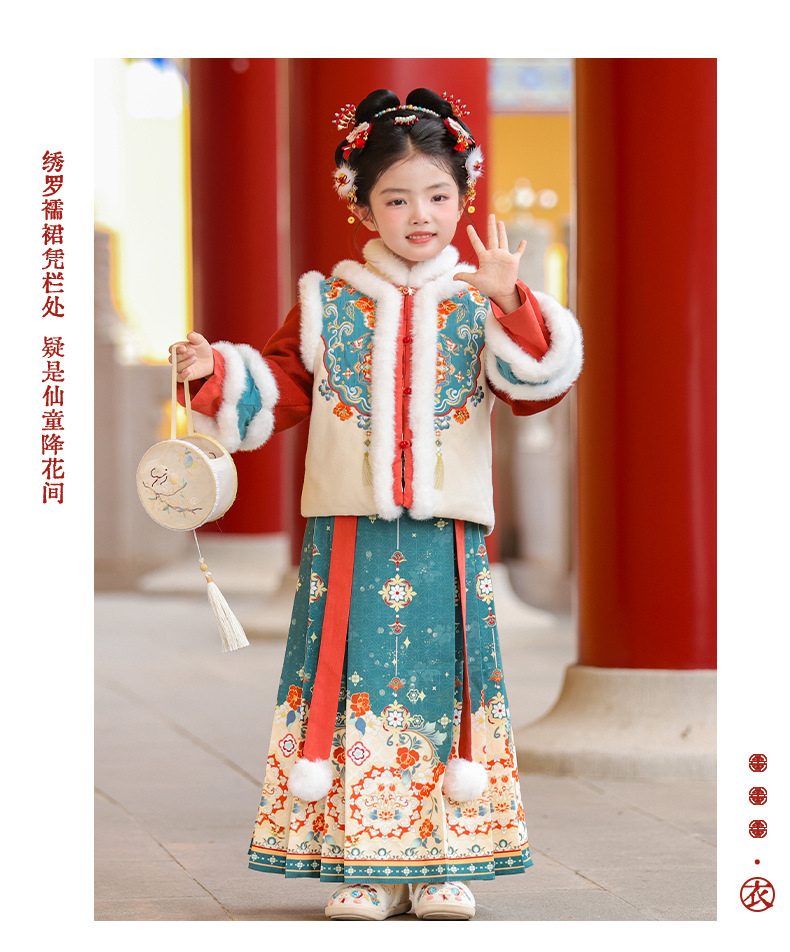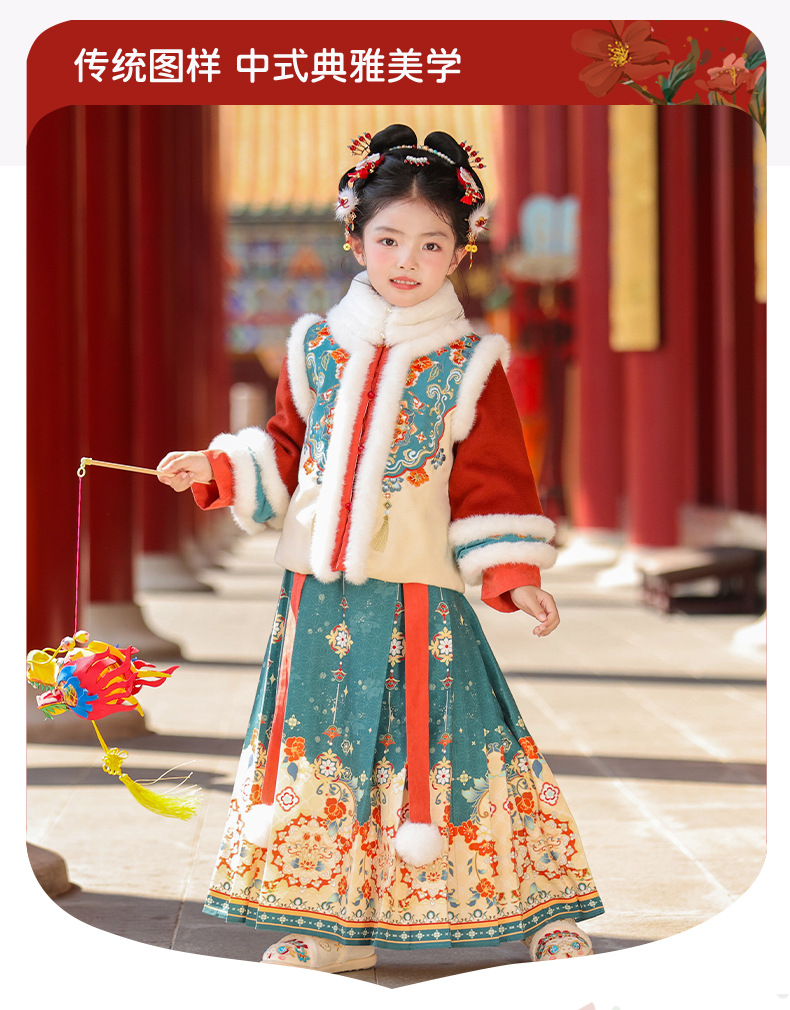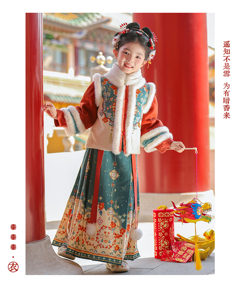 Ханьфу для девочек, зимний стиль 2025 года, традиционный китайский зимний наряд для детей, новогодний наряд, утолщенный древний костюм для Нового года, осень и зима