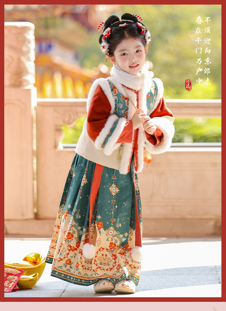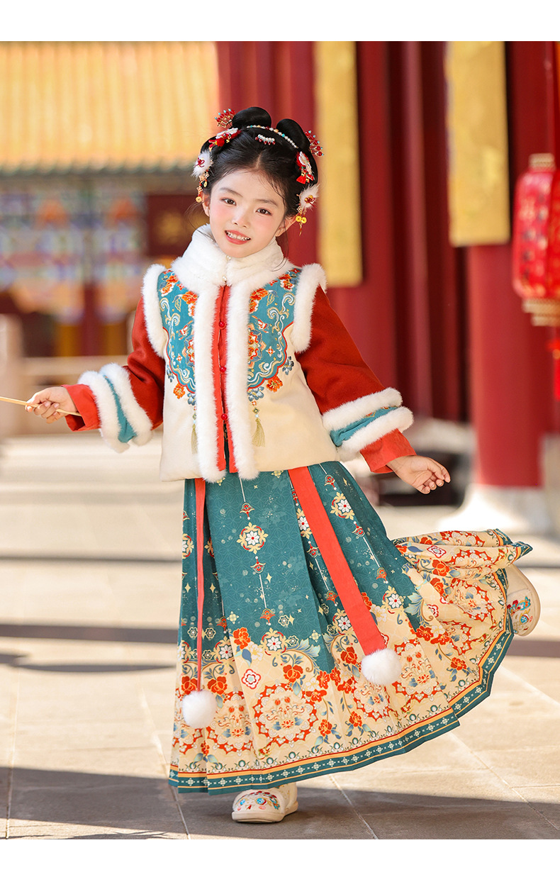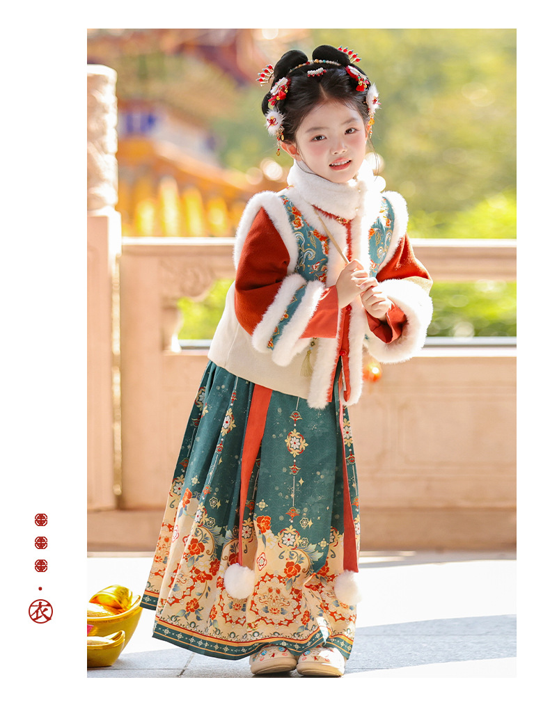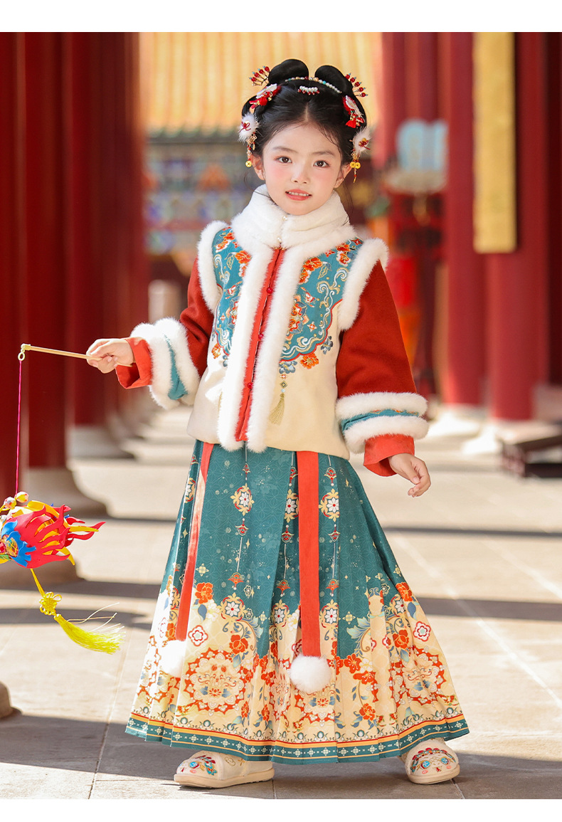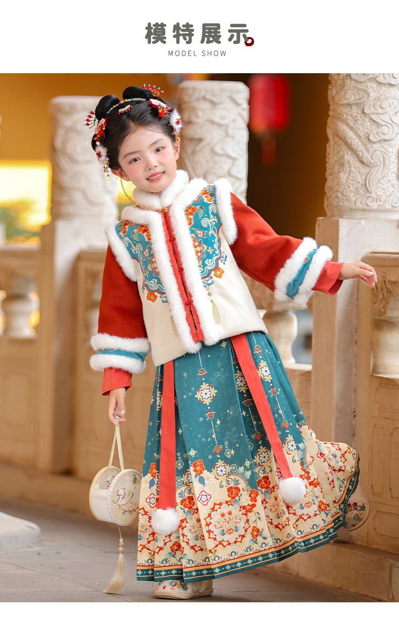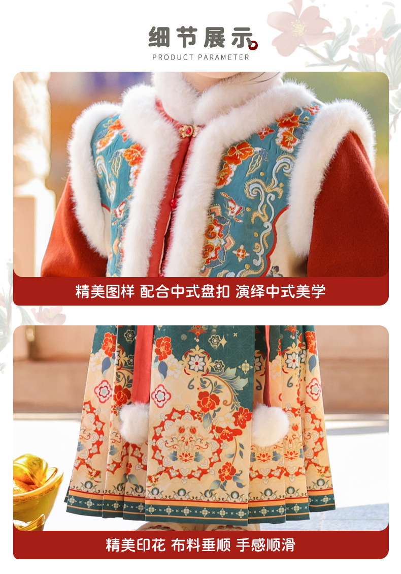 Ханьфу для девочек, зимний стиль 2025 года, традиционный китайский зимний наряд для детей, новогодний наряд, утолщенный древний костюм для Нового года, осень и зима