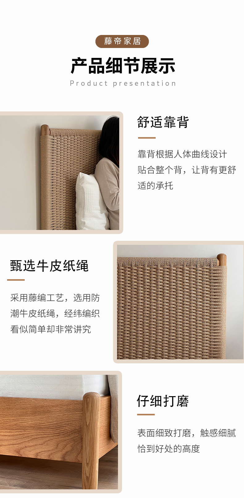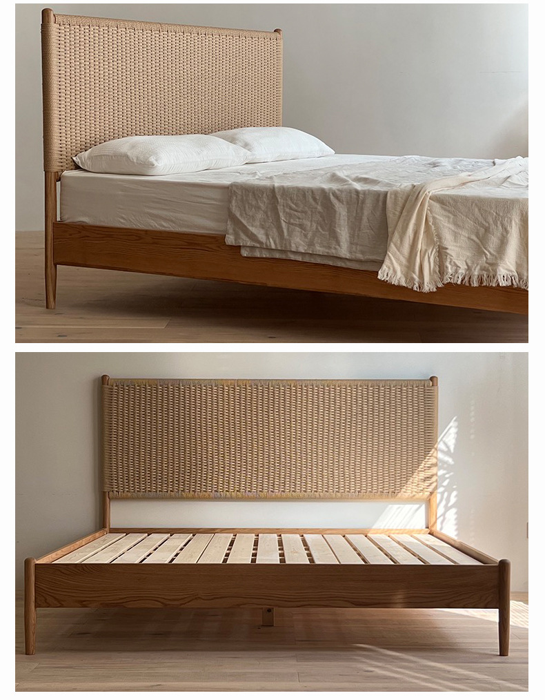 Двуспальная кровать из ротанга в стиле ваби-саби, популярная в интернет-знаменитых гостиницах и отелях, для домашнего использования, винтажная кровать из массива дерева, простой дизайн