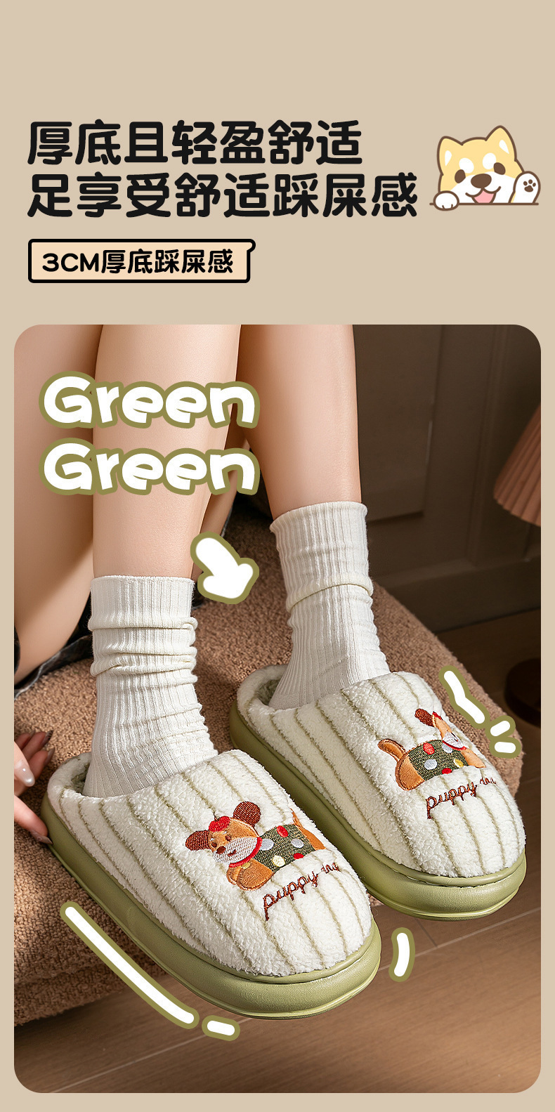 ![]() | Green [comfortable and warm eva thick sole anti-slip] | 38-39 [suitable for 37-38 feet] | ¥10.5 / ≈ 127 ₽ | 1256 | 6119089330035 | |