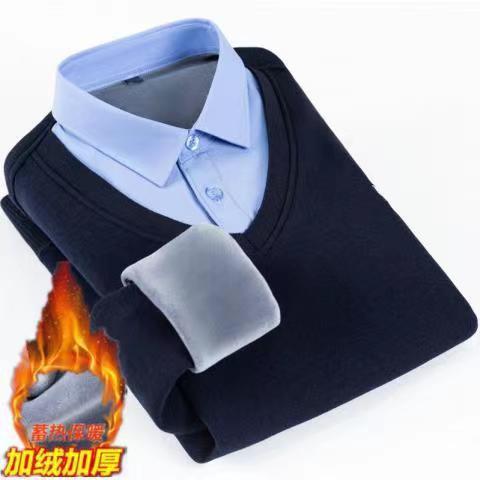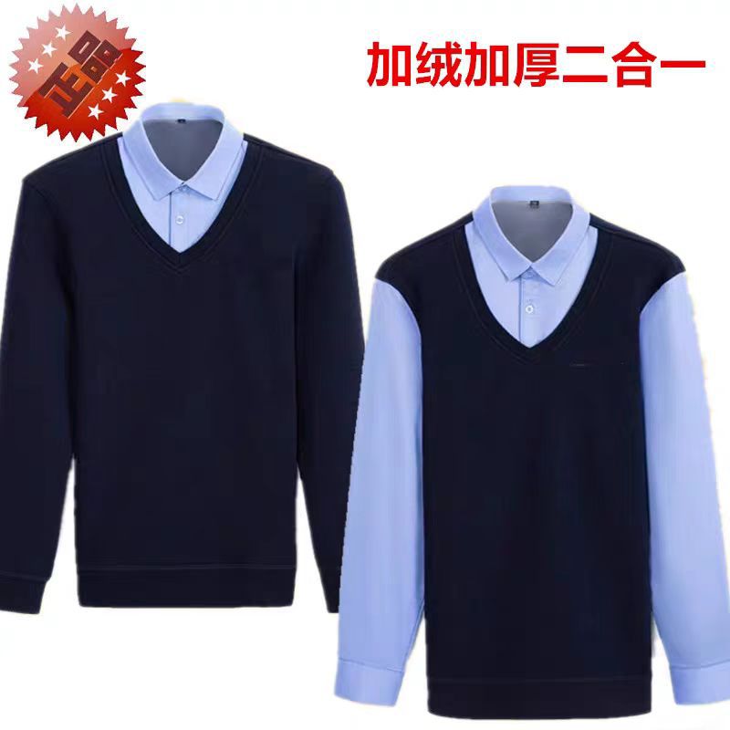Аутентичный зимний шершащий свитер для мужчин, с флисовой подкладкой, фальшивка в два предмета, утолщенная рубашка, базовый свитер, трикотаж, безопасность, commuting, тепло