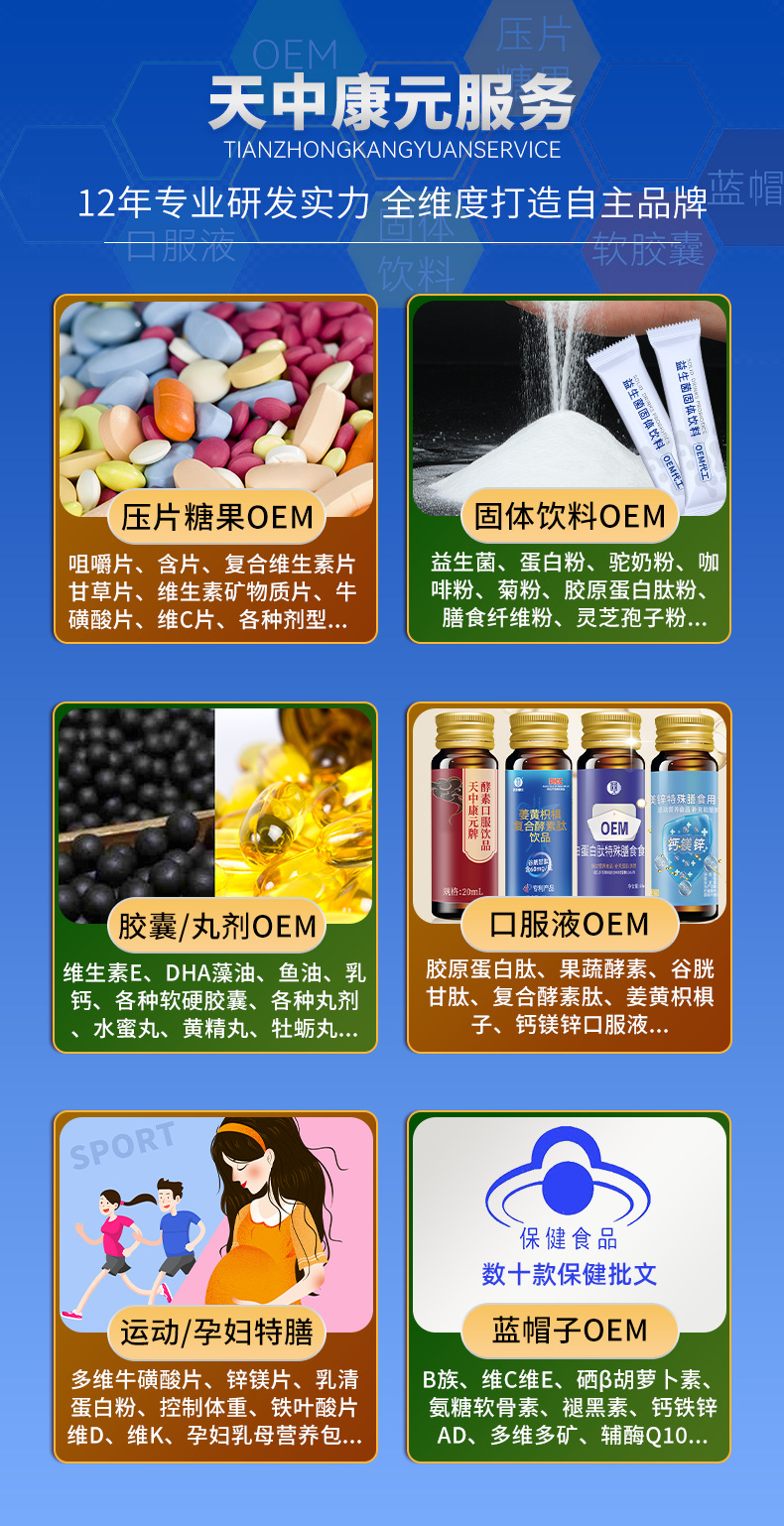 集团现在拥有包括维生素、孢子粉、中老年、青少年、孕妇乳母等数十款竞争力强劲的蓝帽子保健食品,委托代工蓝帽产品,我们均可以提供产品广告申请表助力宣传。