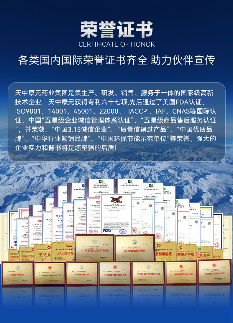 目前市面上的大部分健康产品,我们均有相似配方,我们目前设有天中天然营养健康研究院、营养健康与药食同源重点实验室、天中健康产业发展中心,并且和多所名校、多位国内知名专家教授有深入合作;可依据您提供的产品信息免费为您组方。