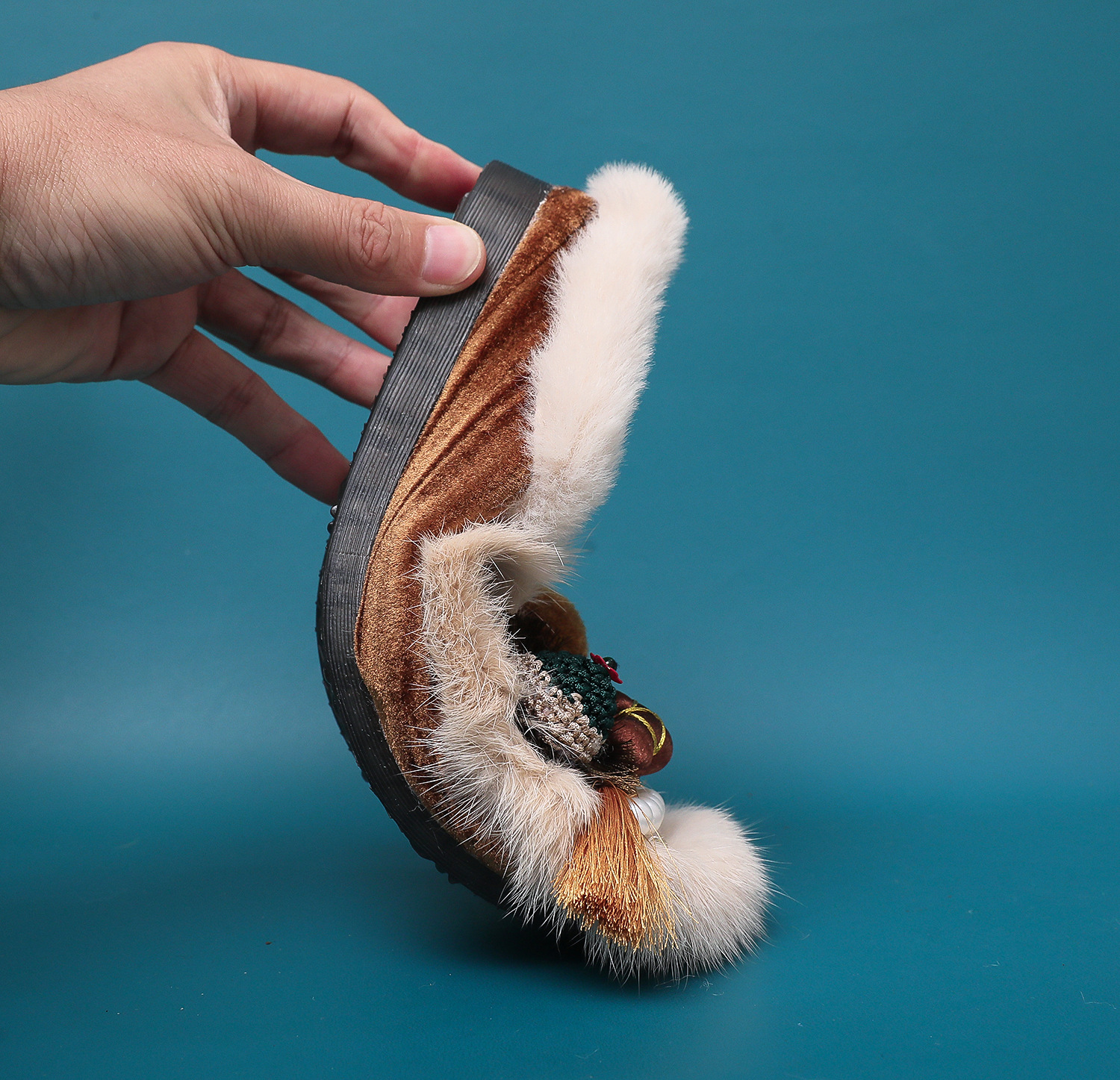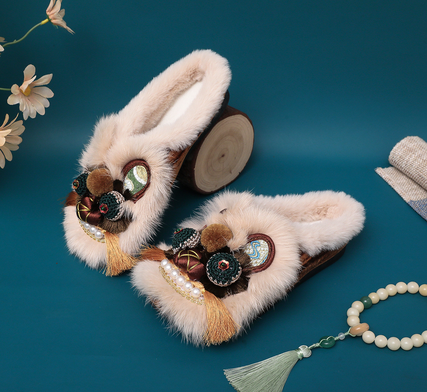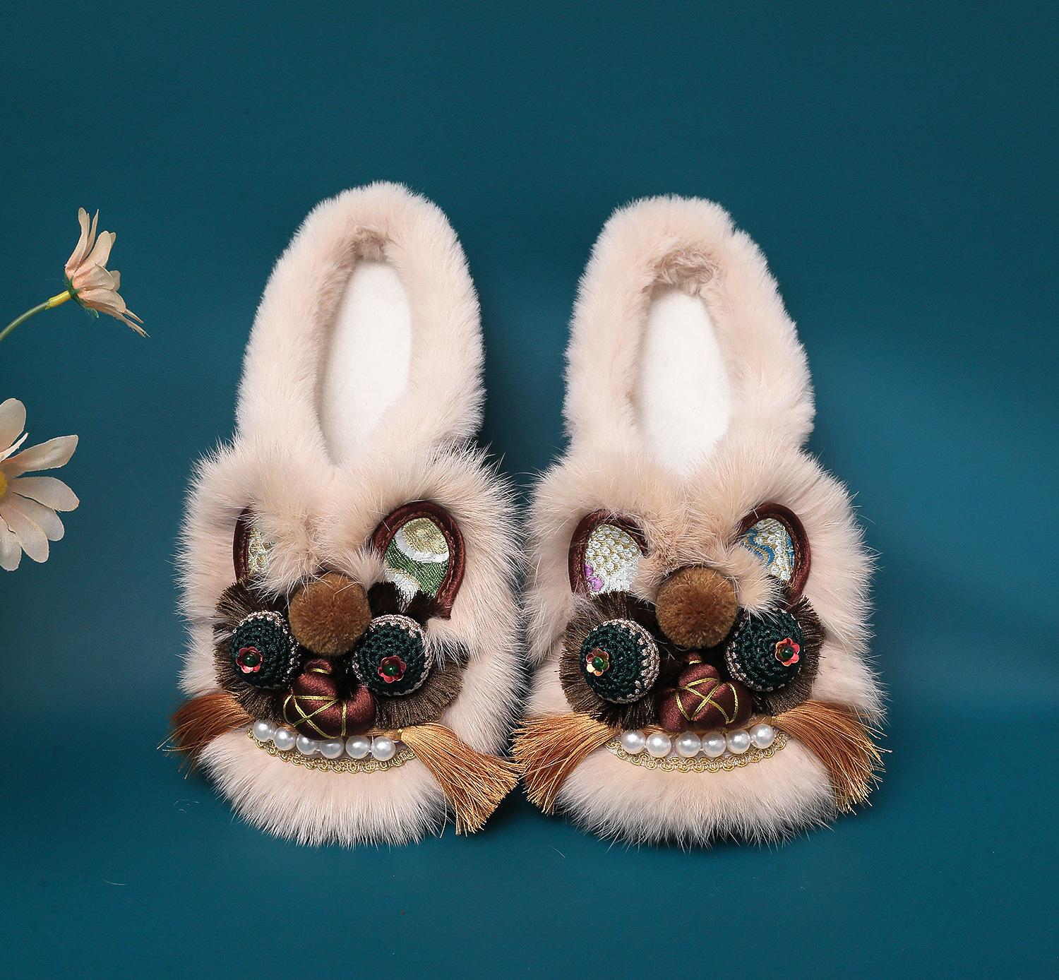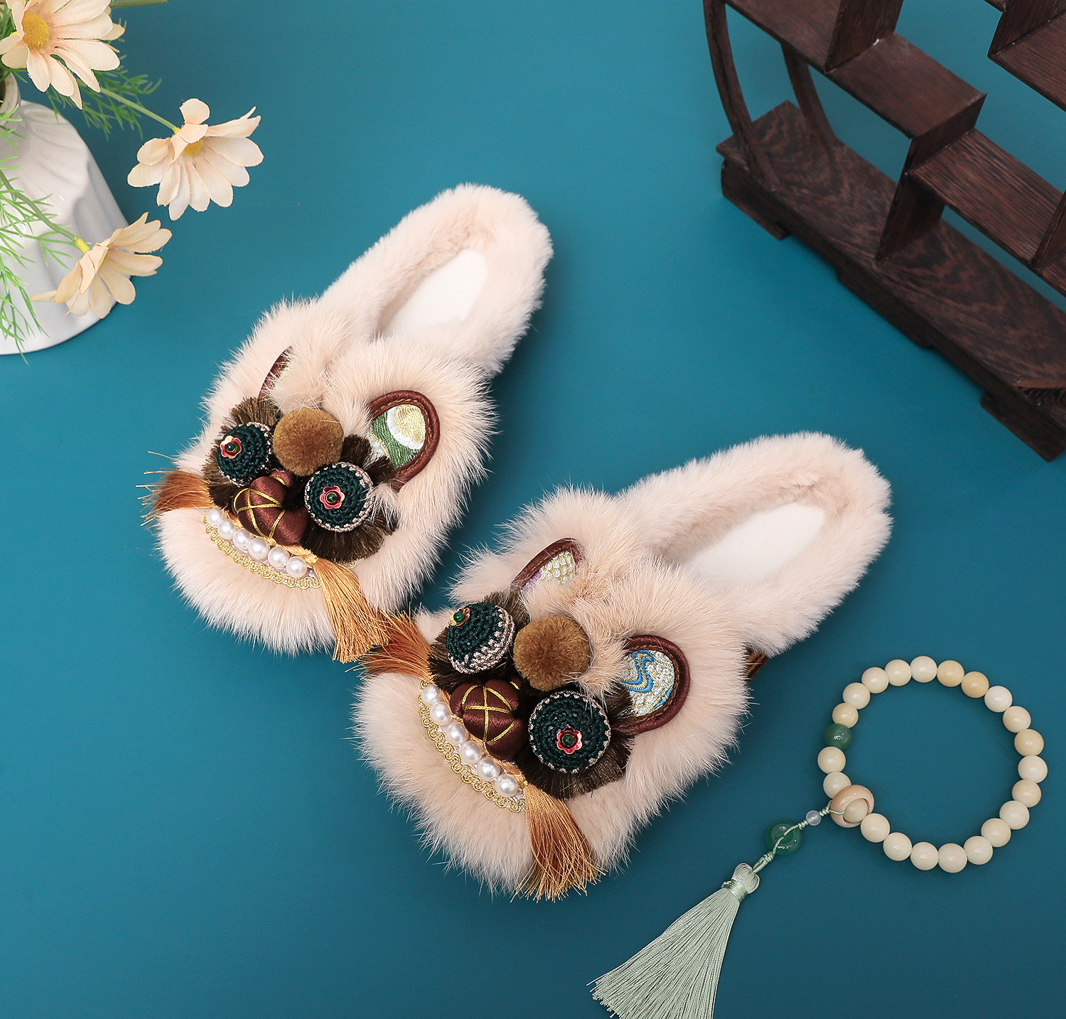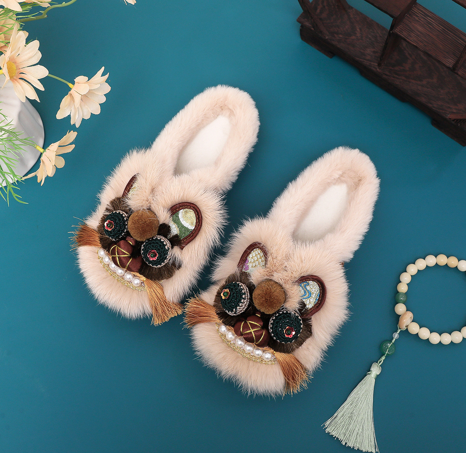 Оригинальные ручные тканевые туфли с тигровой головой для взрослых, зимние бархатные тапочки для женщин, для дома и улицы, новый китайский стиль полутеплые тапочки
