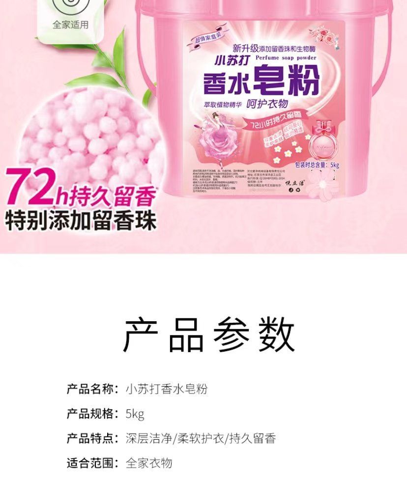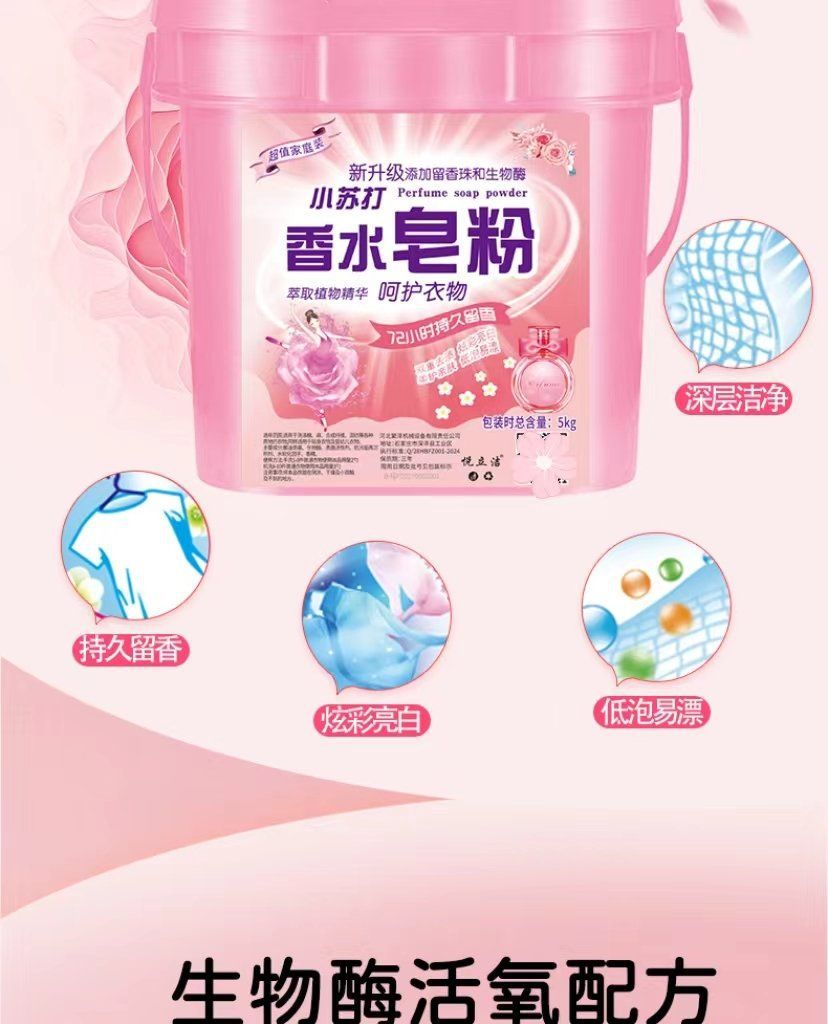 Новое обновленное Порошок для стирки с ароматом соды Долговечные ароматические гранулы Мощный удалитель пятен Машинная и ручная стирка 5кг Большое ведро