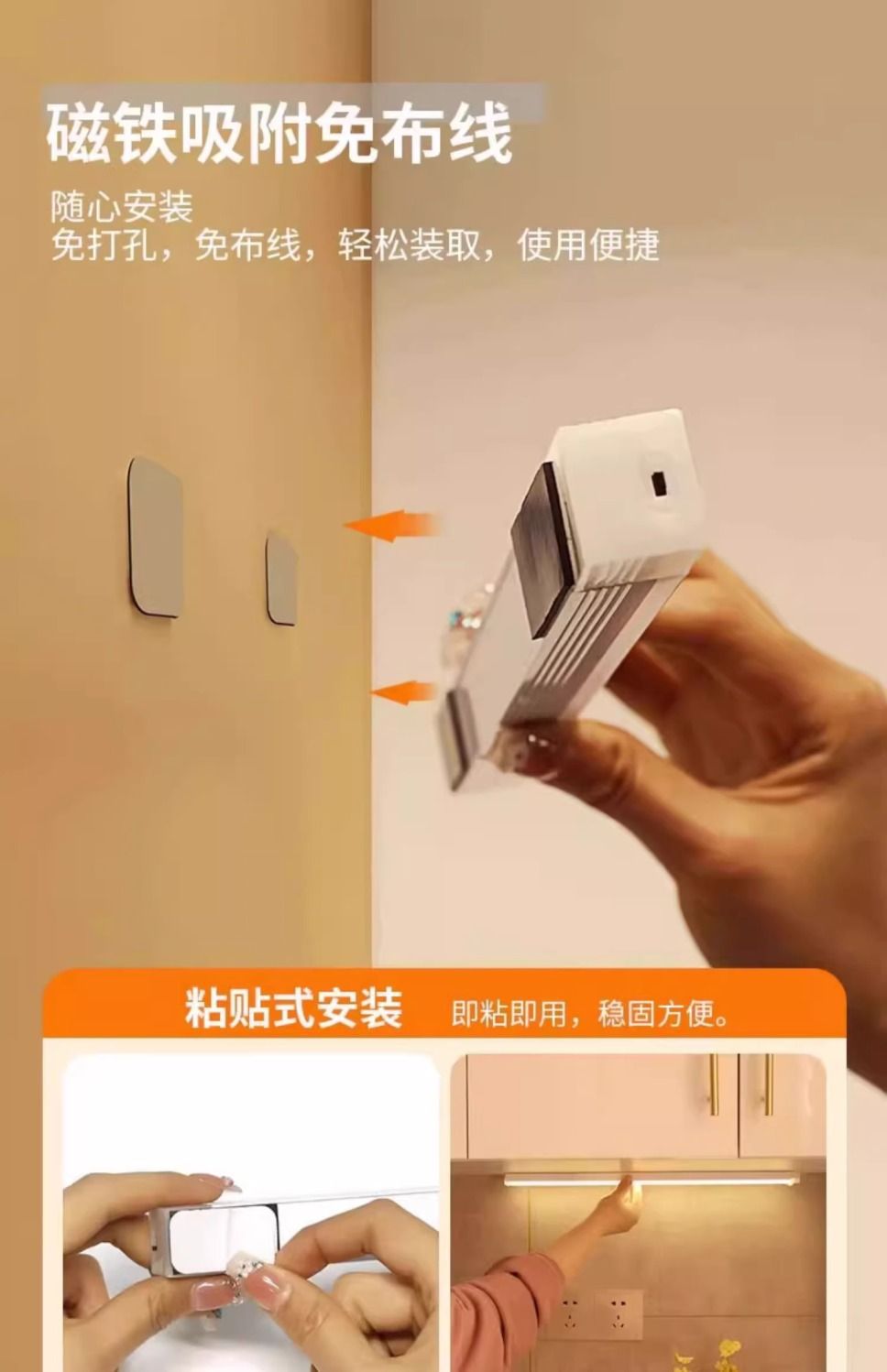Умная беспроводная зарядка ночной лампы с датчиком движения, без проводки, для домашнего использования в коридорах, шкафах, светодиодная лента