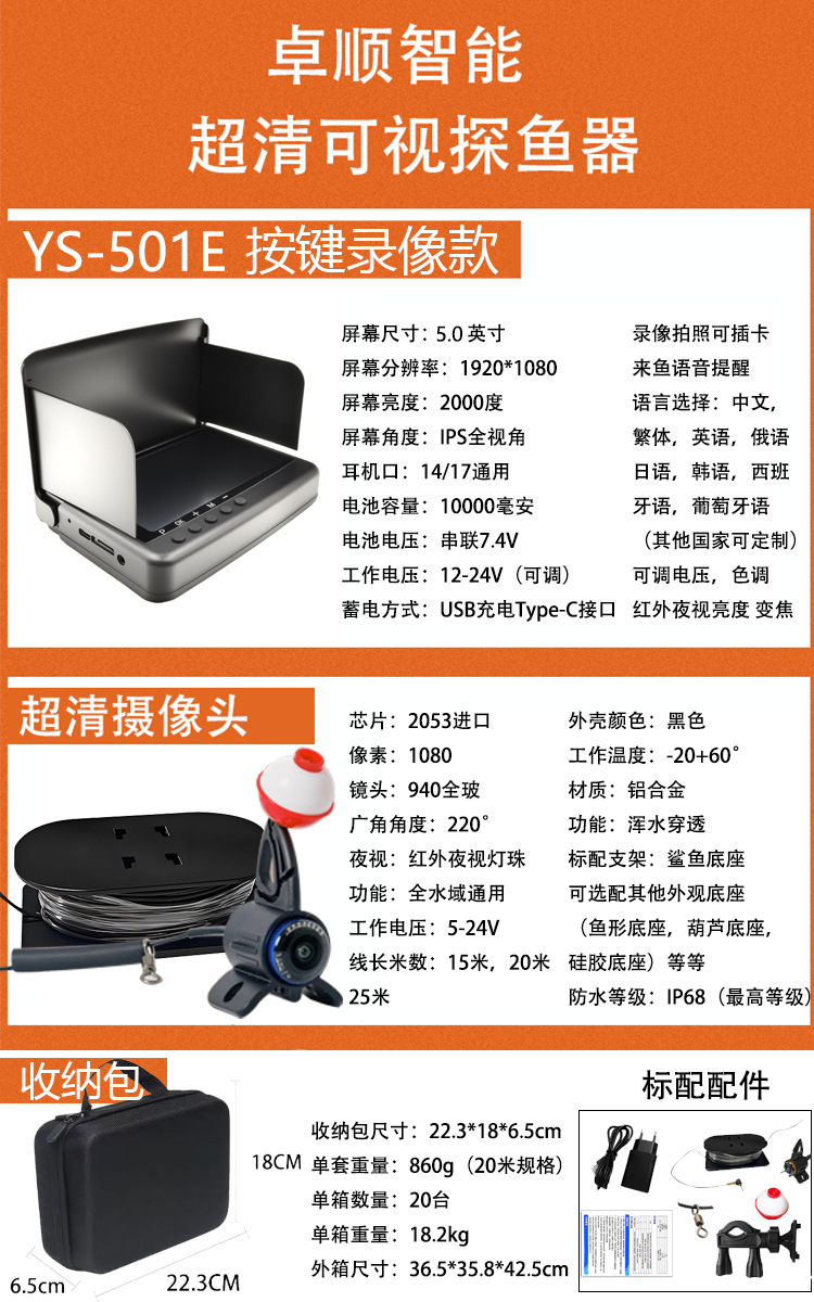 ![]() | [day and night use] 5inch hd display with recording function + 1080 camera + 20m lines + 10000 mah battery (storage bag) | ¥360.0 / ≈ 4 349 ₽ | 500 | 5956354740538 | |