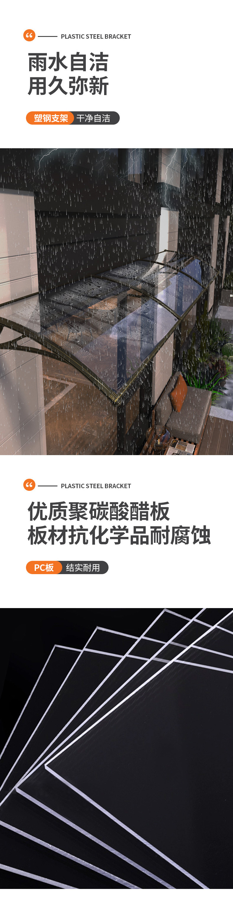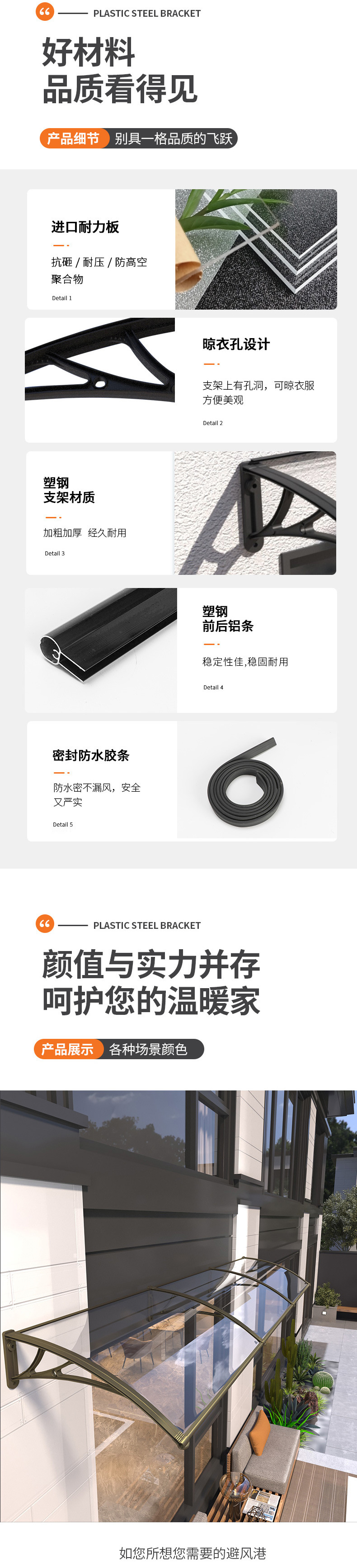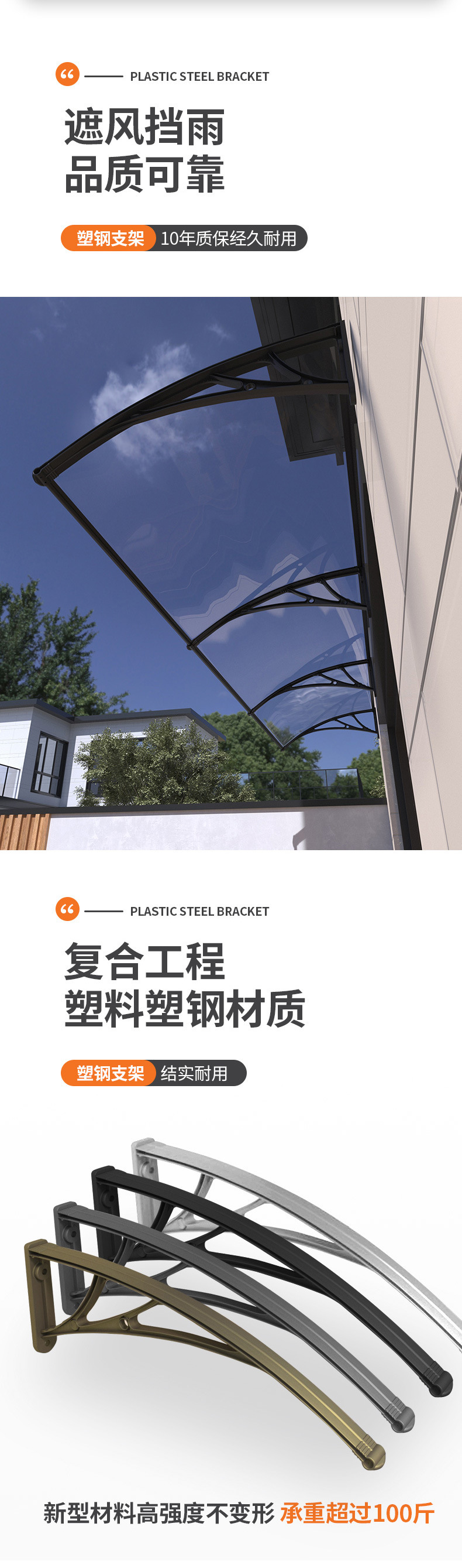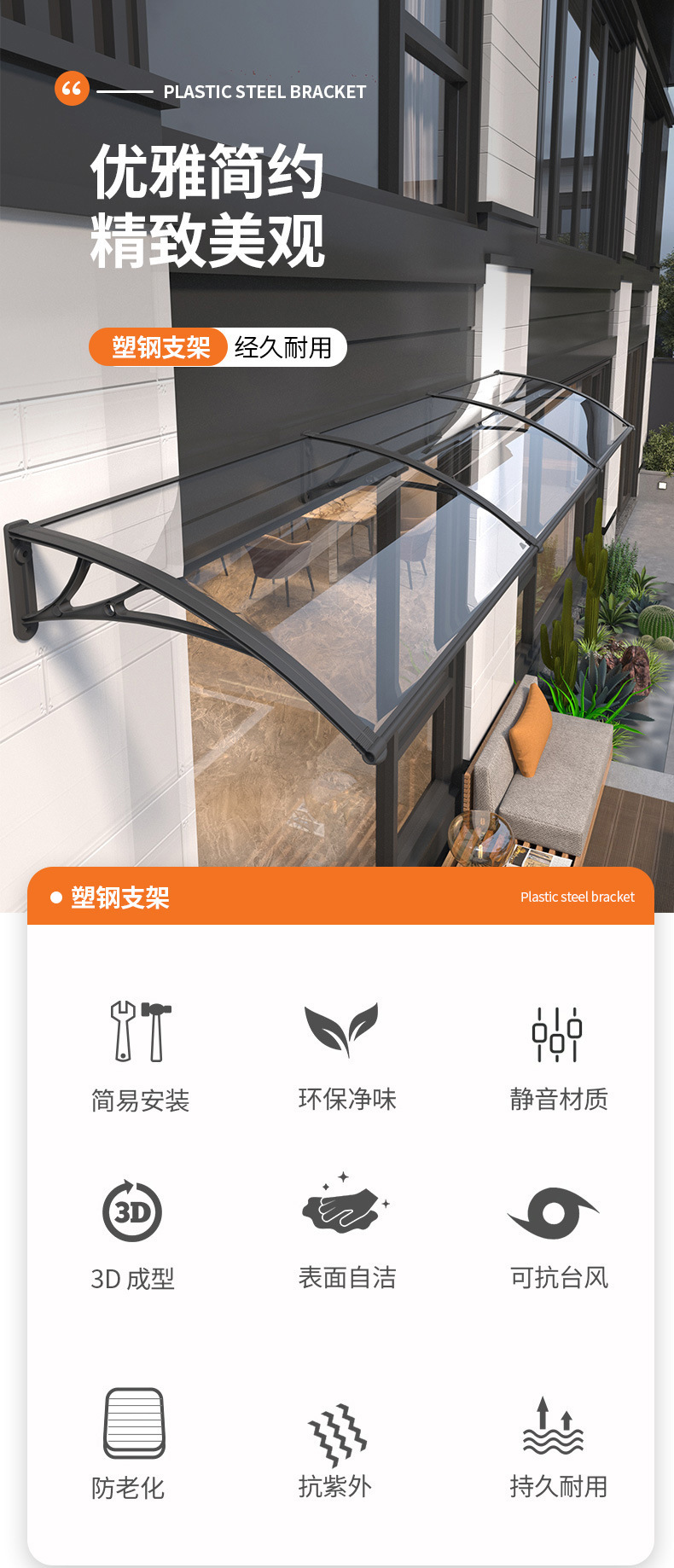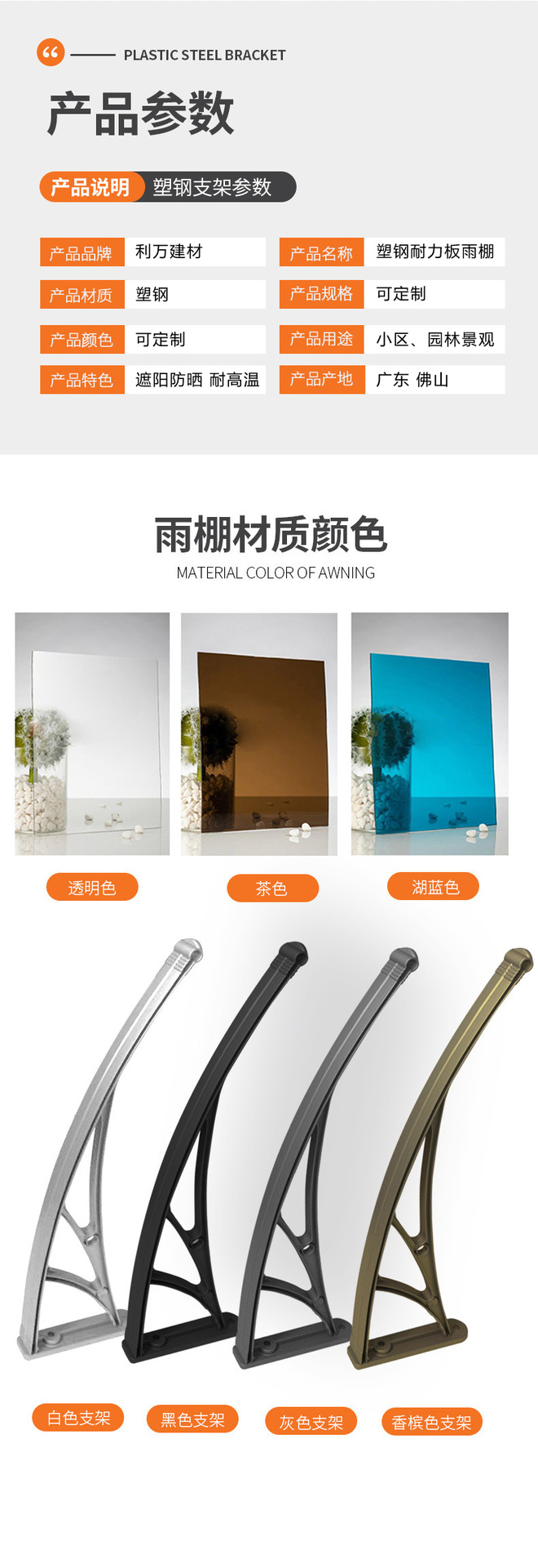Номер товара Plastic steel bracket + pc endurance board awning