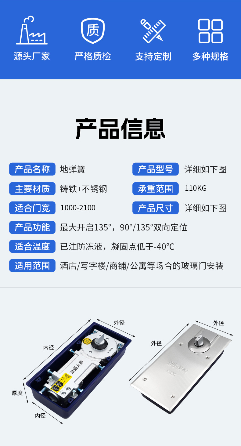 Напольная пружина для стеклянной двери 220, инженерная модель, аксессуары для рамной двери, безрамная стеклянная дверь, заводская напольная пружина