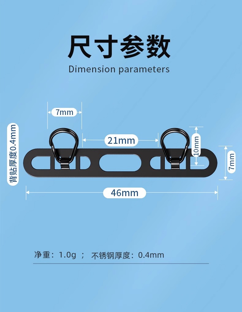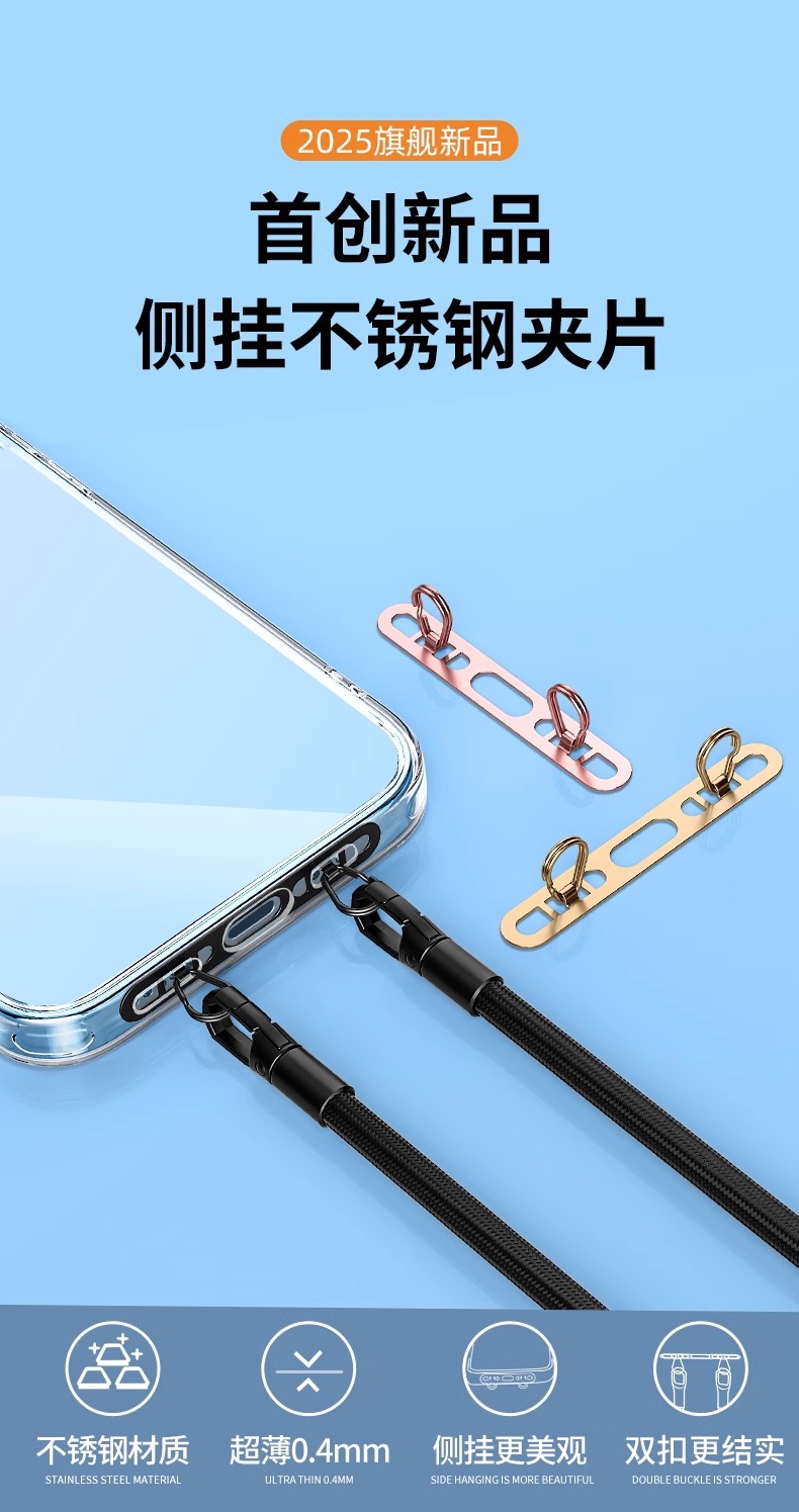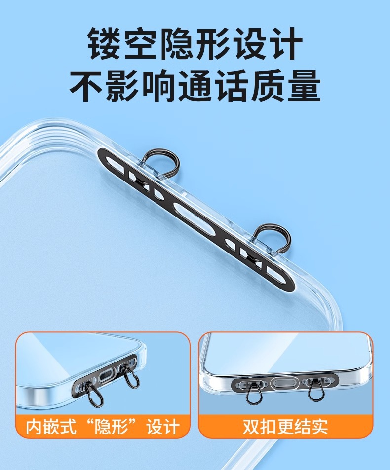 Пространственный зажим для шнурка мобильного телефона Нержавеющий стальной клип Двойная застежка Металлический ультратонкий анти-утерянный задний патч