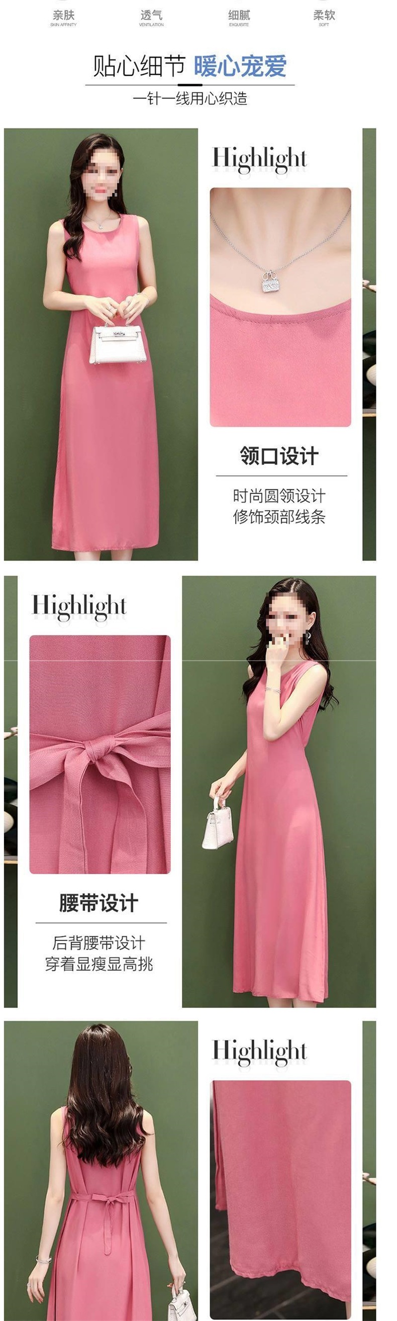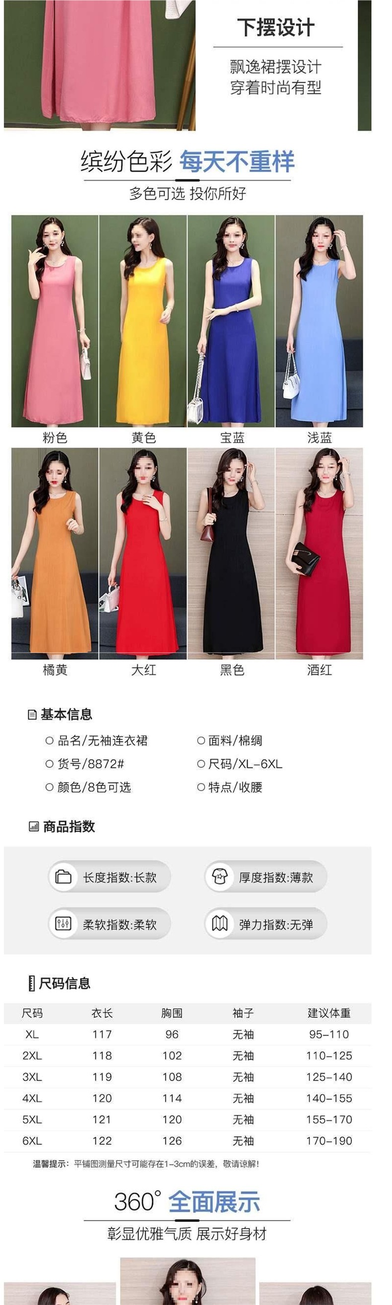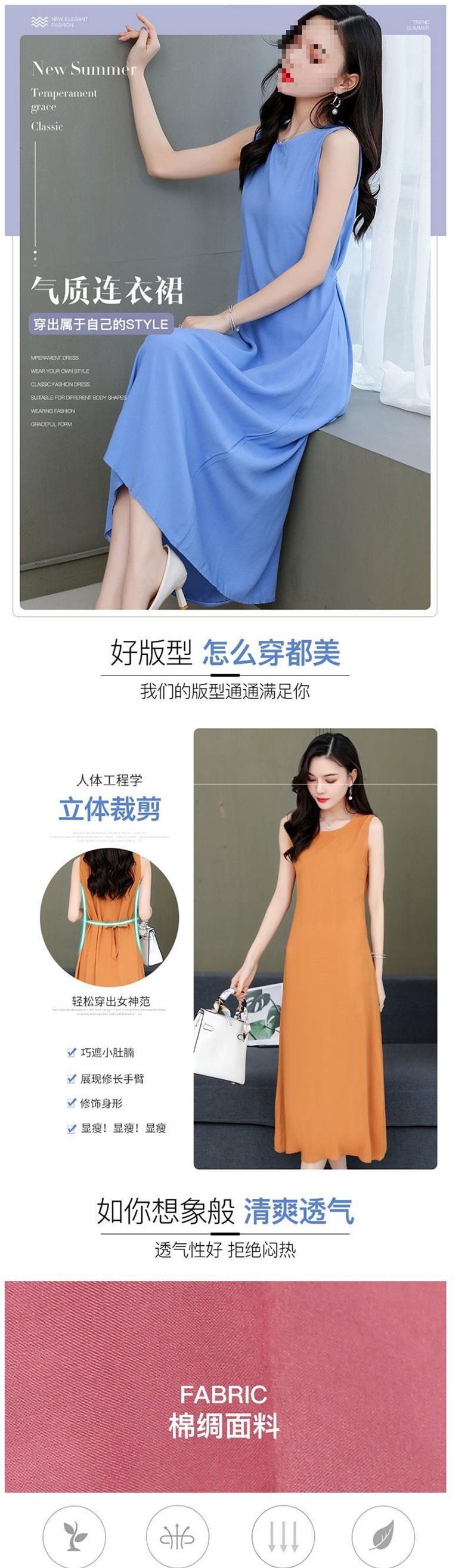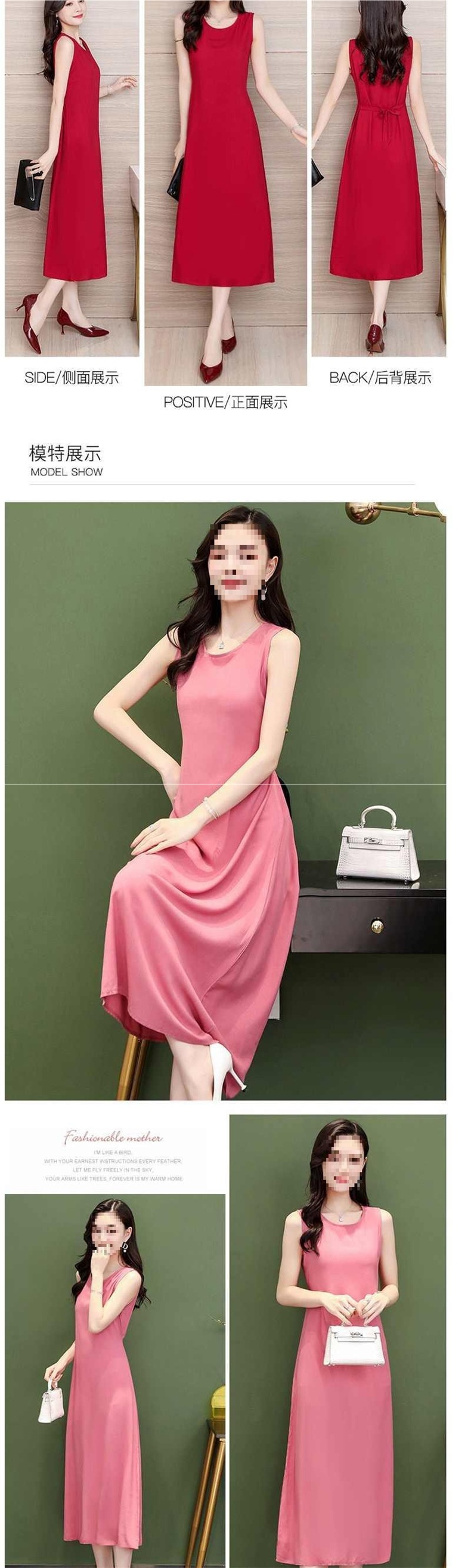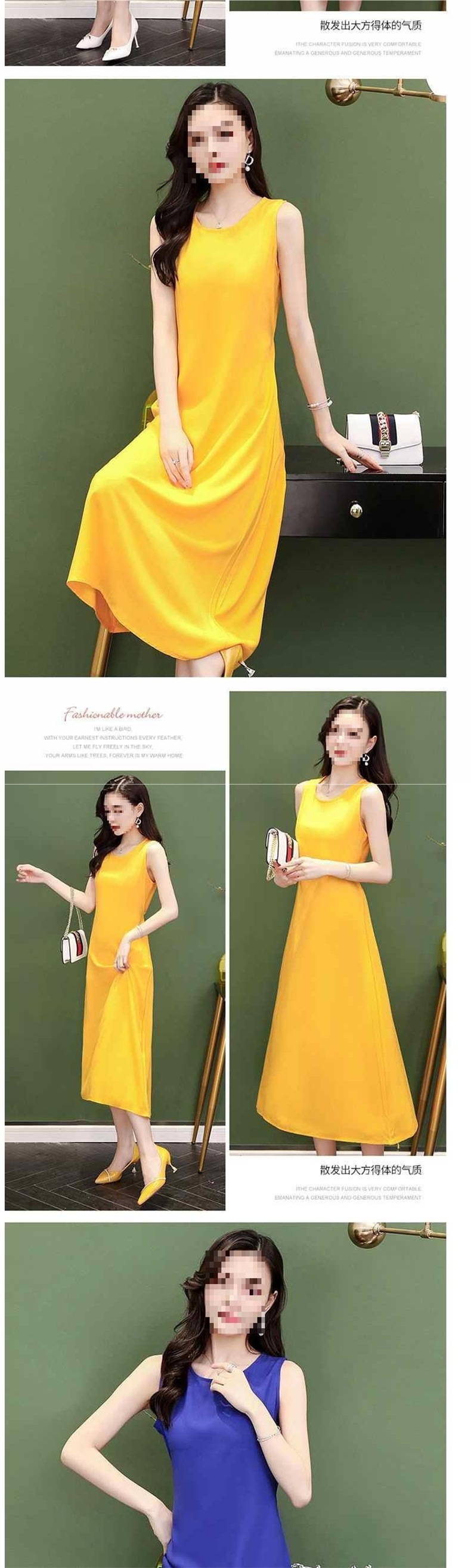 Хлопковое шелковое безрукавное платье, длинная юбка, однотонный стройнящий вид, свободный большой размер, повседневная одежда для матерей, универсальная юбка с большим подолом