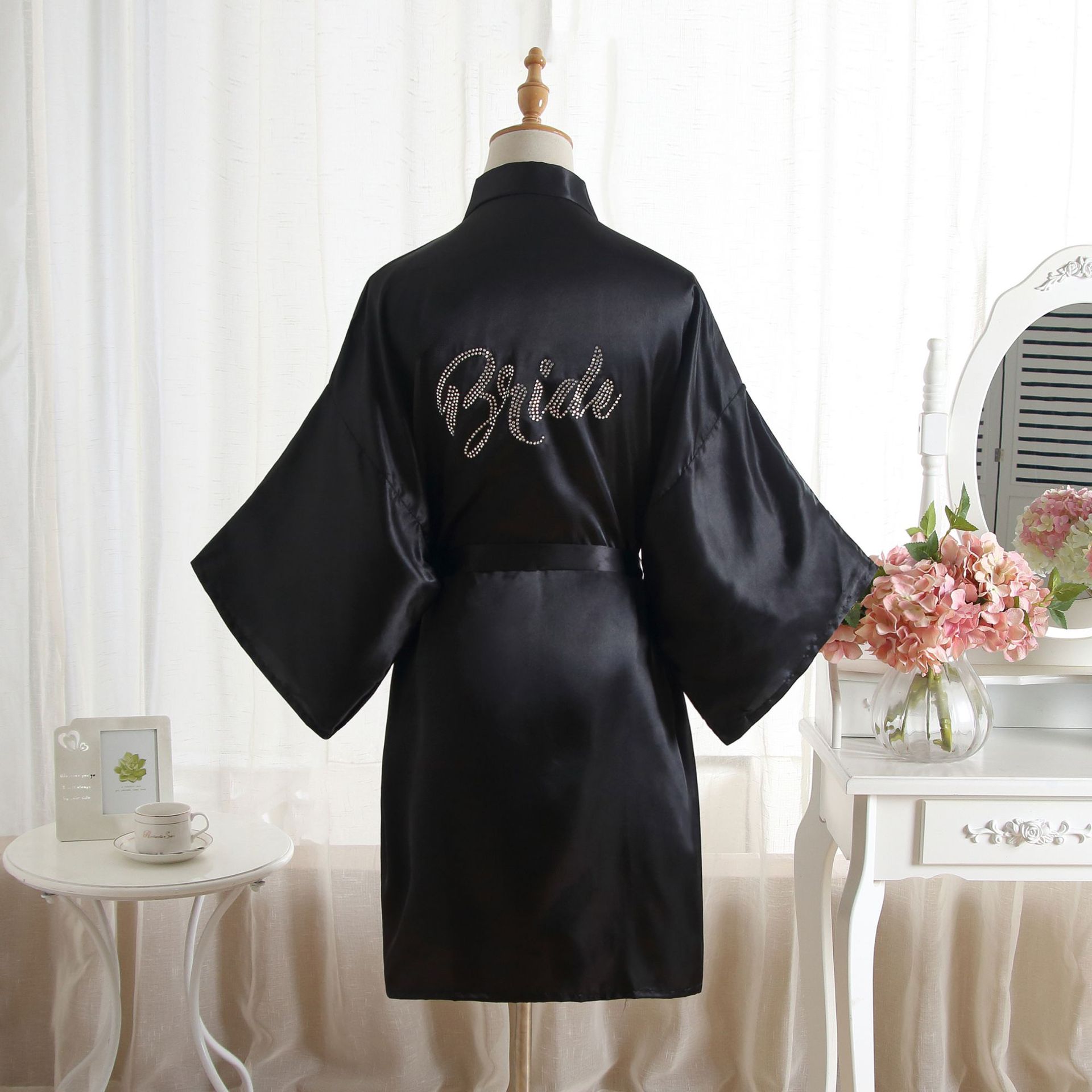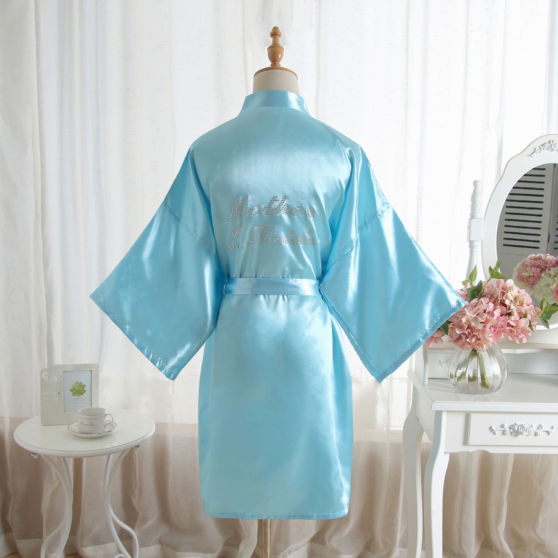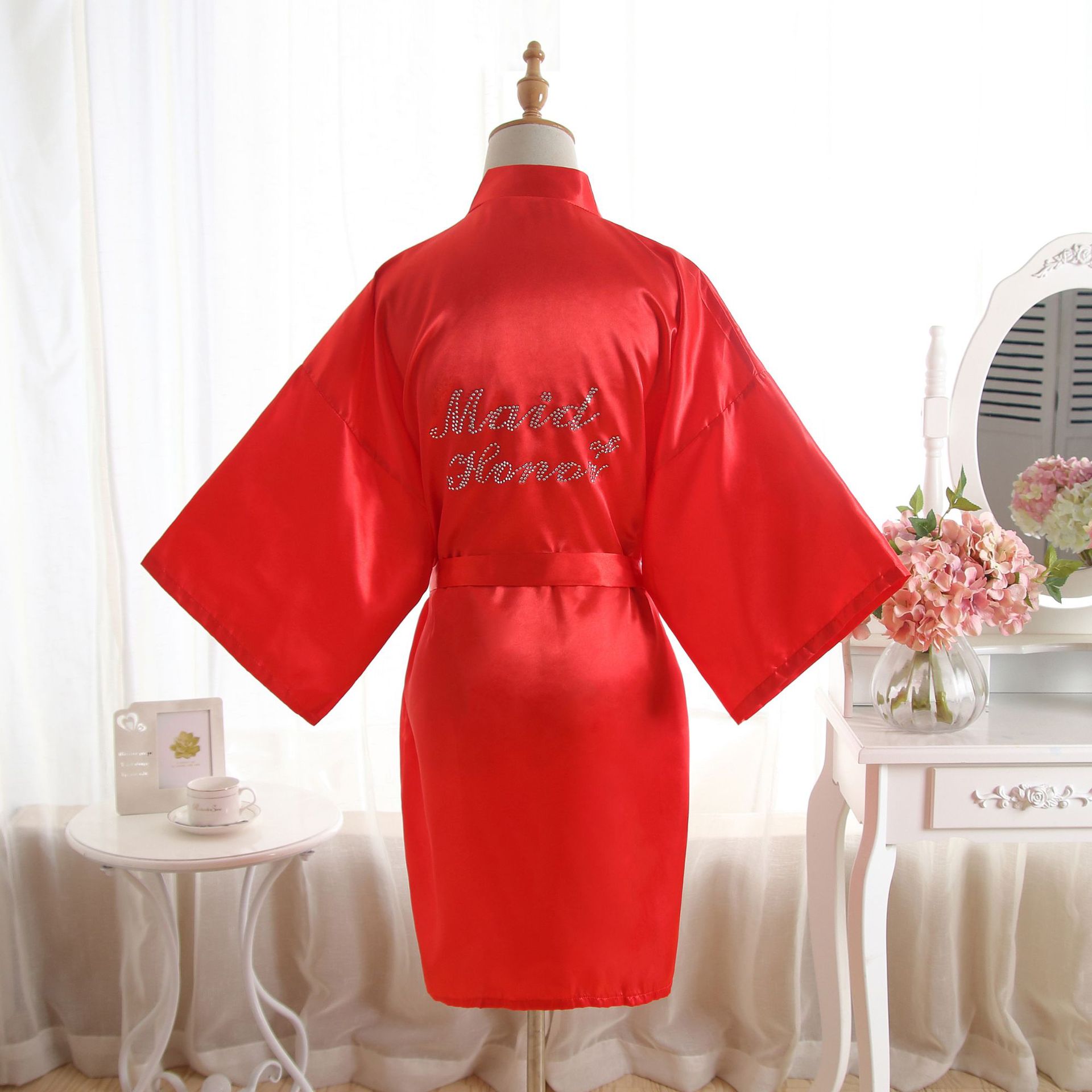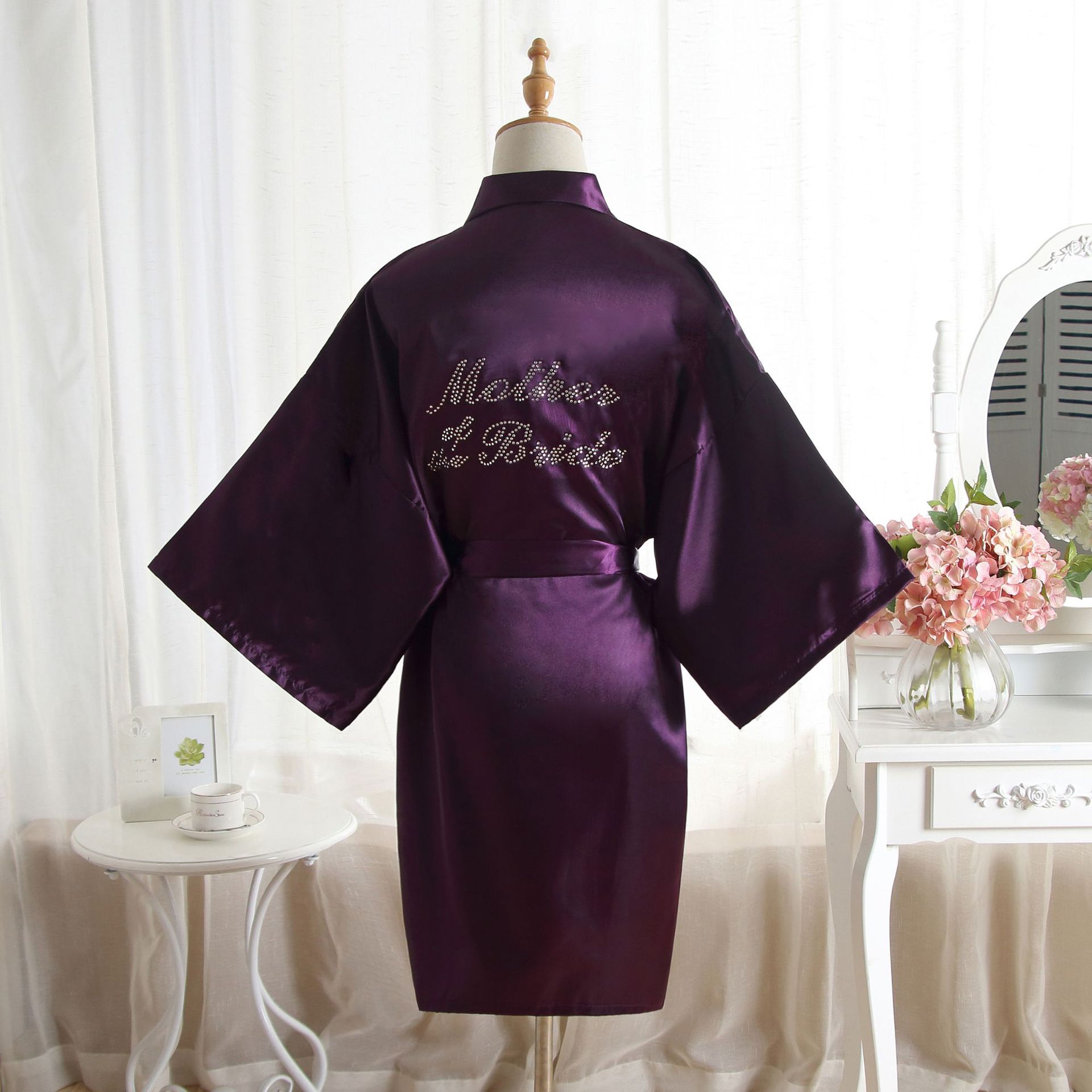 类似款:纯色同款晨袍伴娘Bridesmaid,首席伴娘Maid of honor,新娘母亲Mother of the Bride。以上字母均有现货。另有白色烫钻同款哦