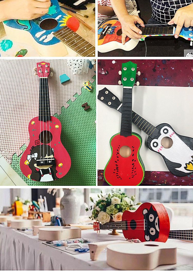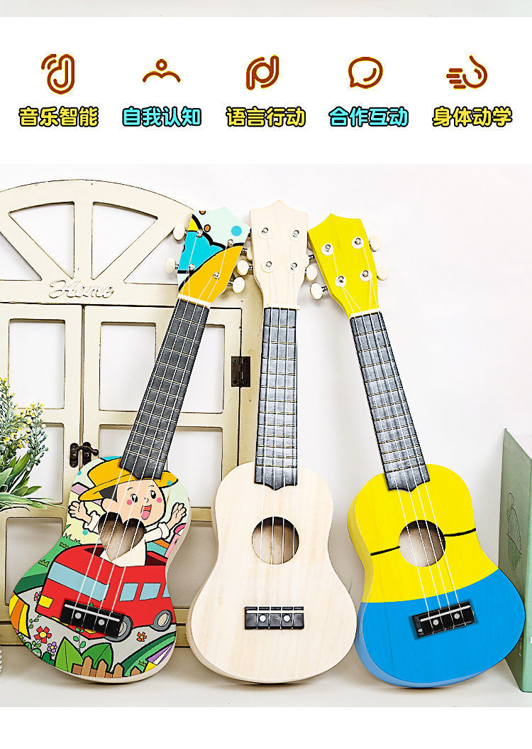 Маленькая гитара укулеле, раскрашенная вручную, набор материалов для начинающих, деревянная ручная работа