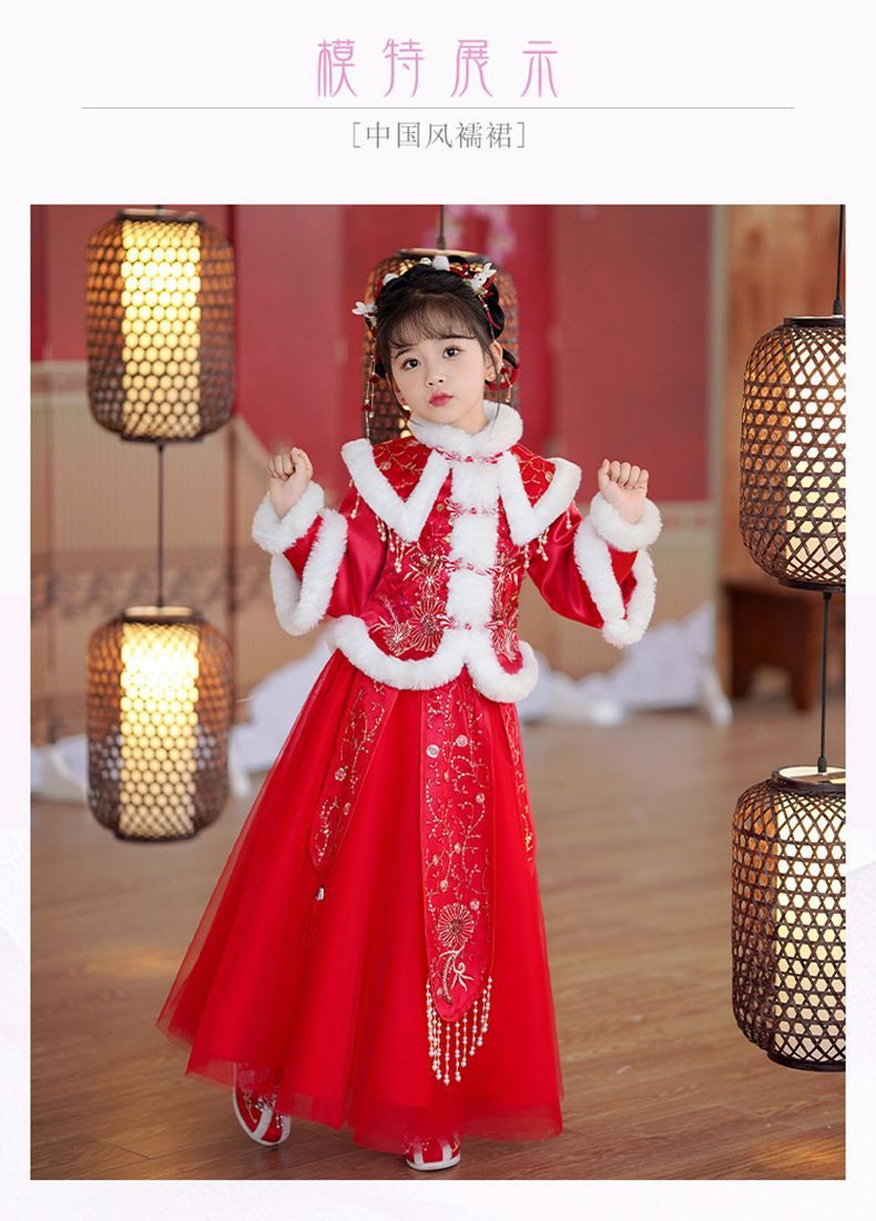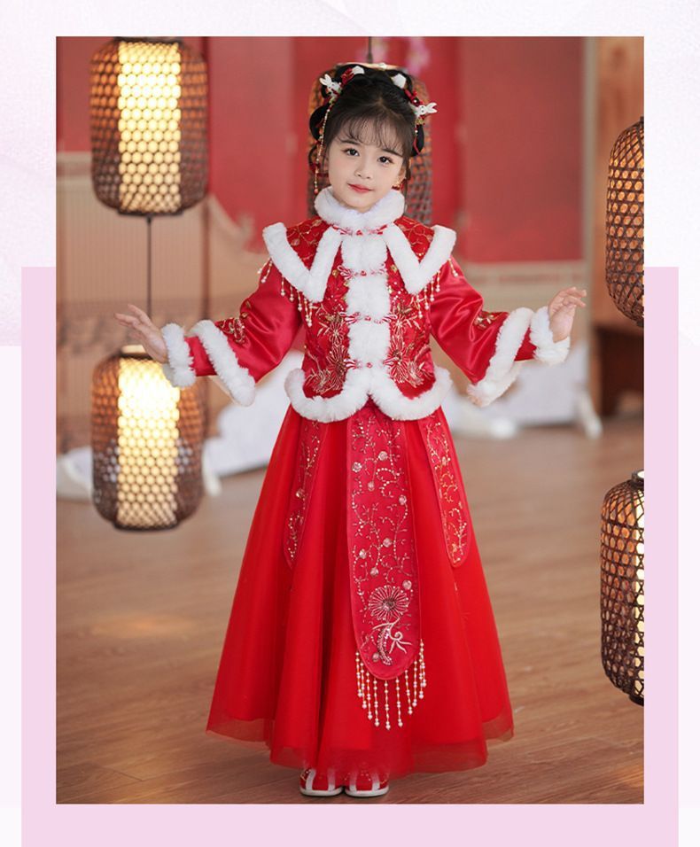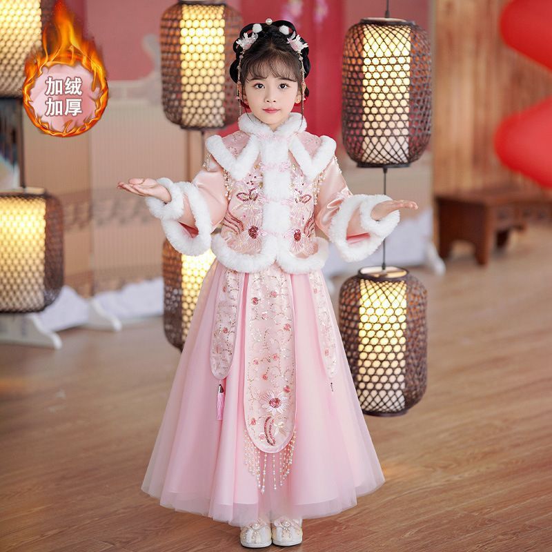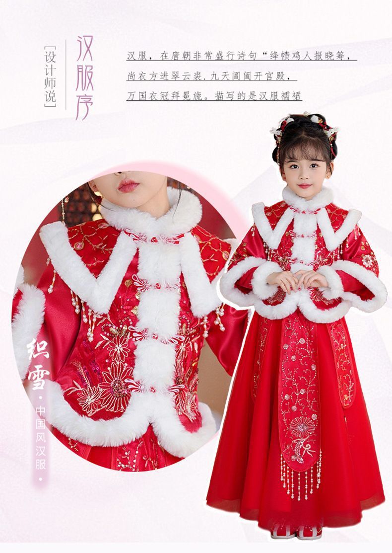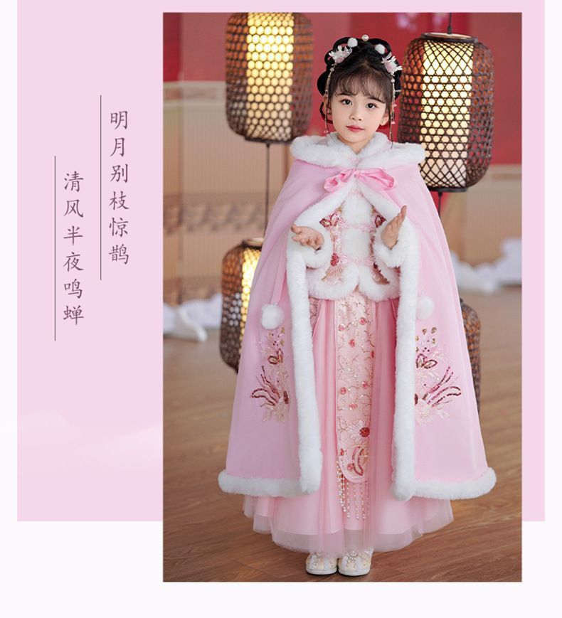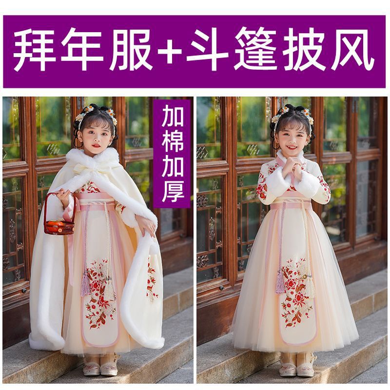 Зимняя китайская верхняя одежда, костюм династии Хань для девочек, капюшон, утепленный, уличный, ветрозащитный плащ, костюм для маленькой девочки