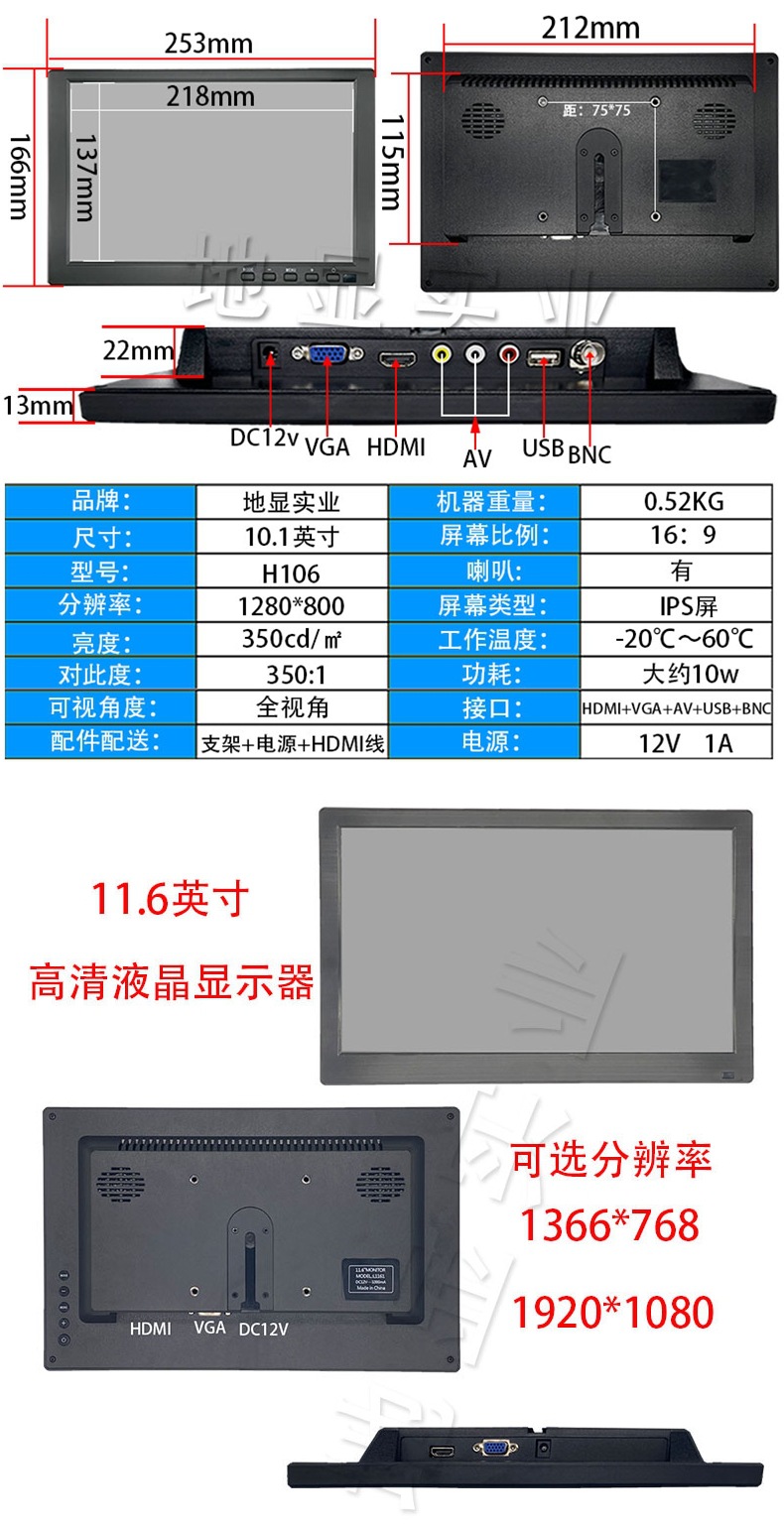 ![]() | 11.6inch hdmi+vga (1920*1080) ultra-clear ips screen with sound | ¥427.0 / ≈ 5 198 ₽ | 200 | 6120719646166 | |