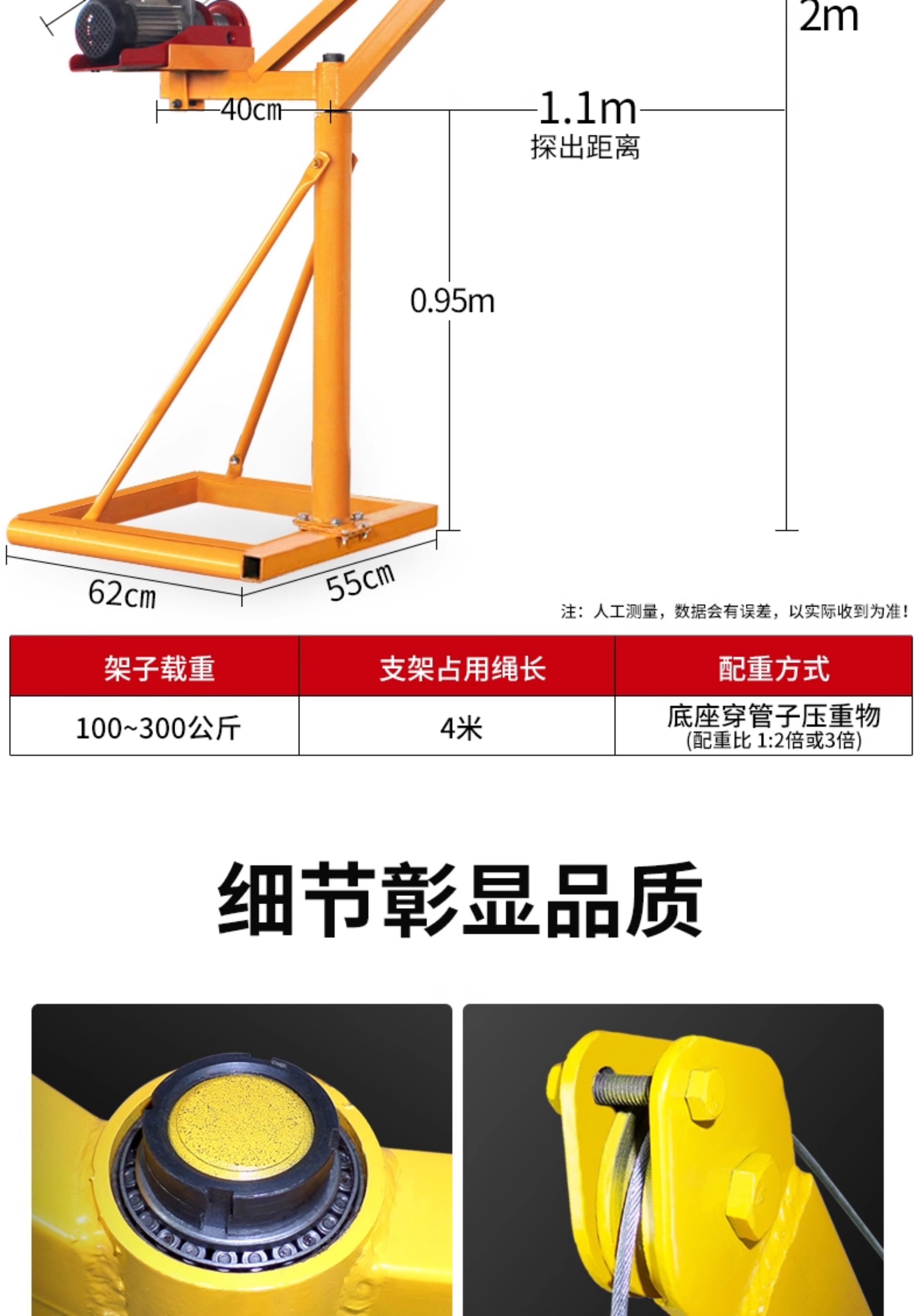 Малый бытовой кран 220В для крыши, подъемник на 1 тонну для декорирования строительных площадок и подъема материалов