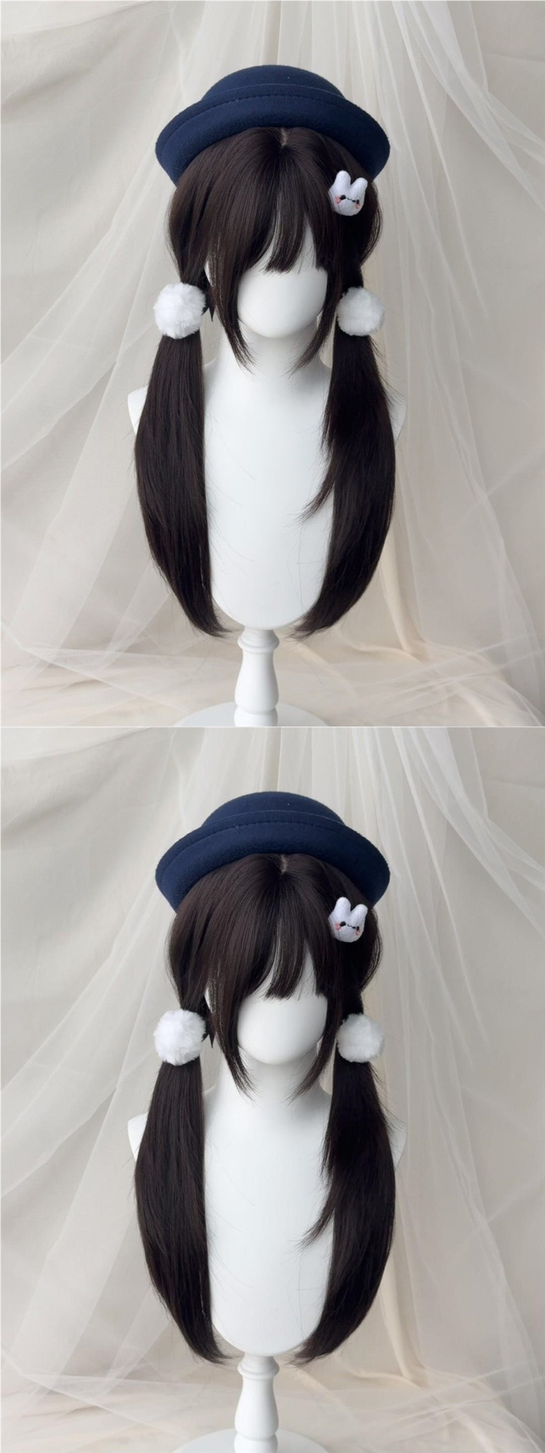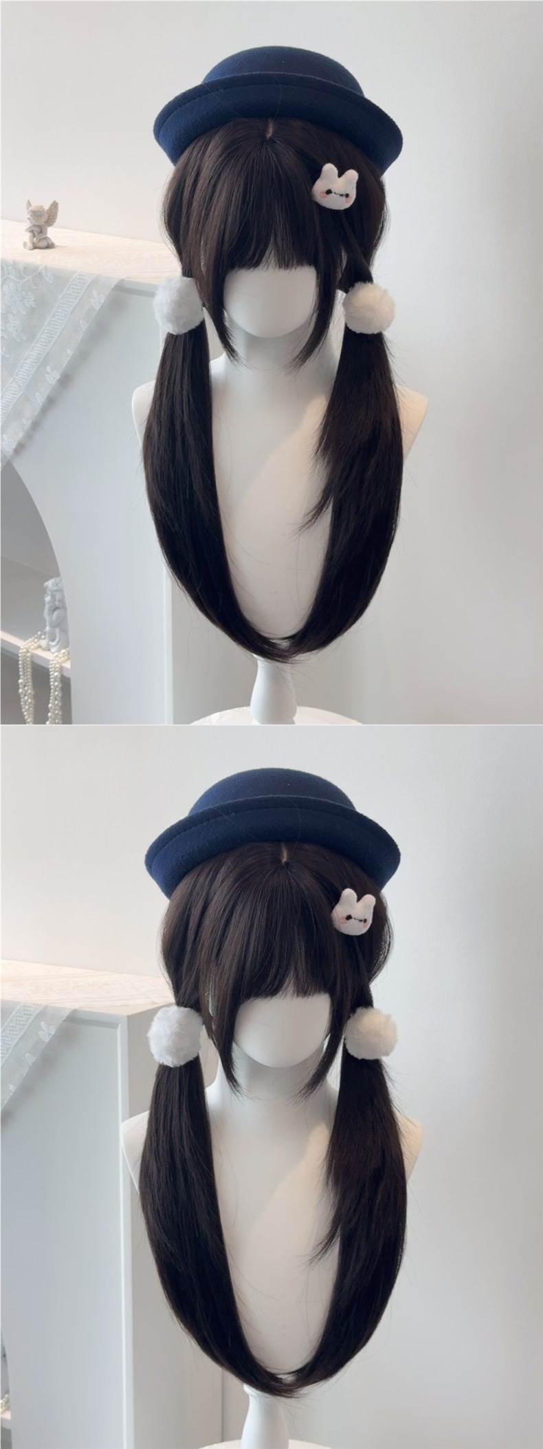Японский стиль, черный длинный прямой парик Лолита, натуральный набор