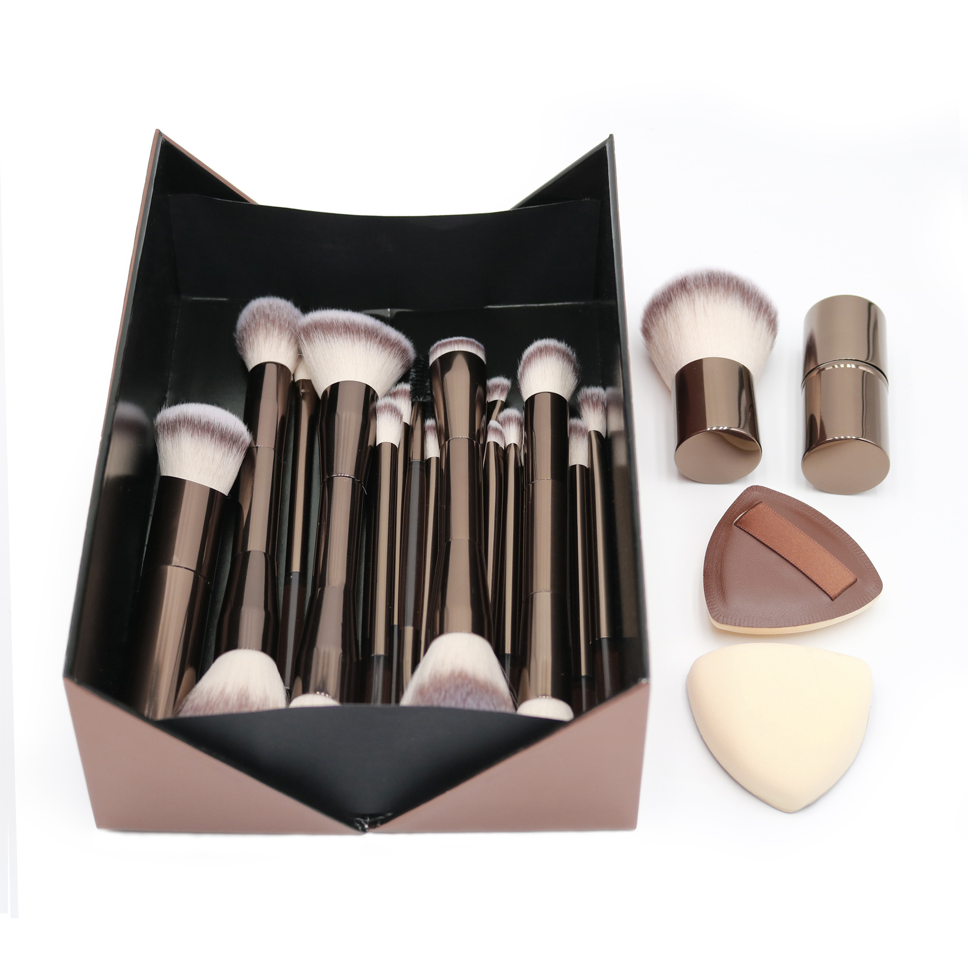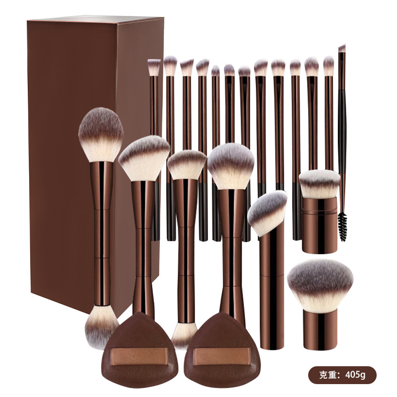Набор из 20 кофейных алюминиевых кистей для макияжа с грибовидной кистью для пудры, выдвижной кистью и не впитывающим пухом для пудры